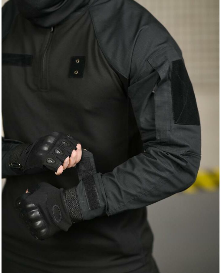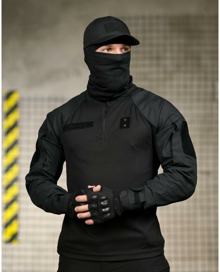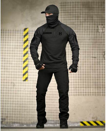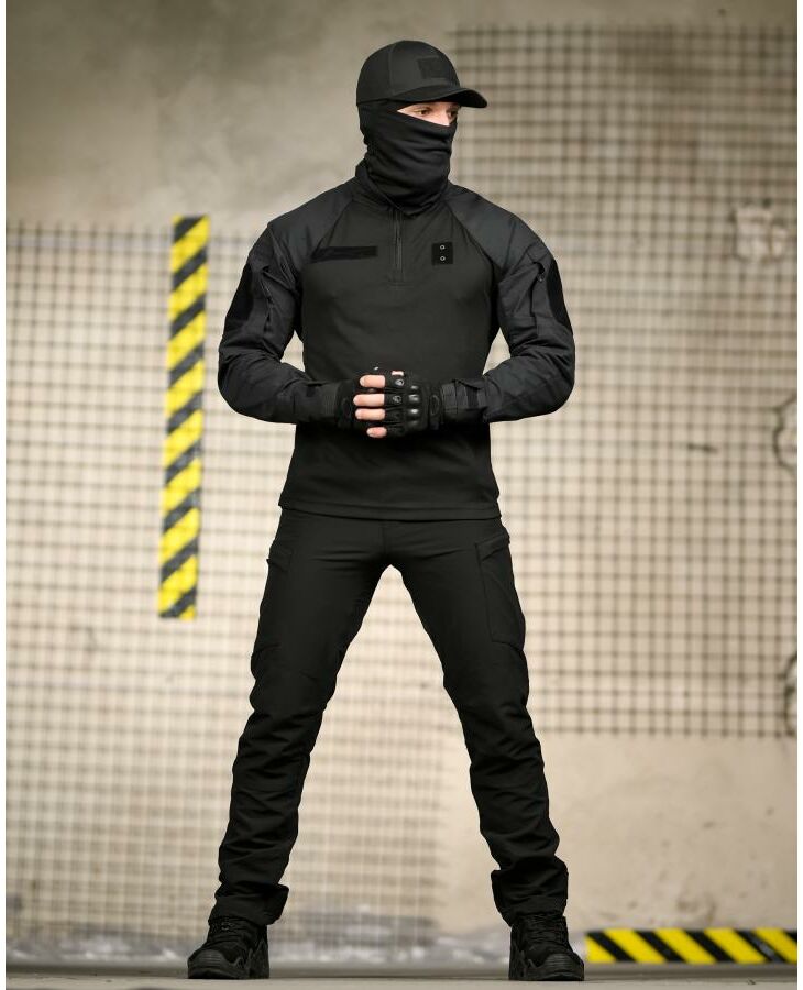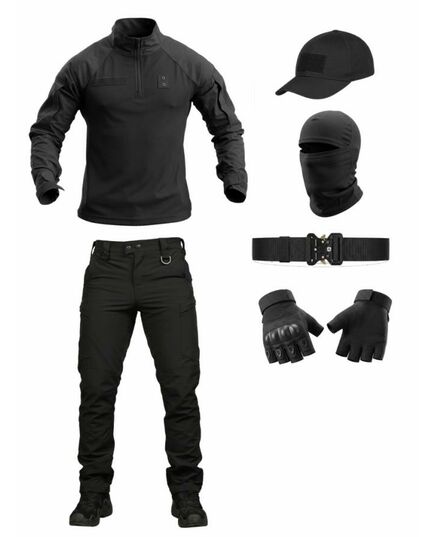 Повноцінний чорний тактичний комплект для роботи, тренувань та активного використання. Максимальний комфорт, свобода рухів та захист.