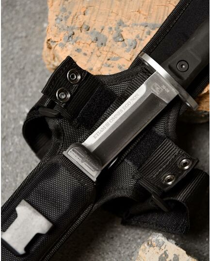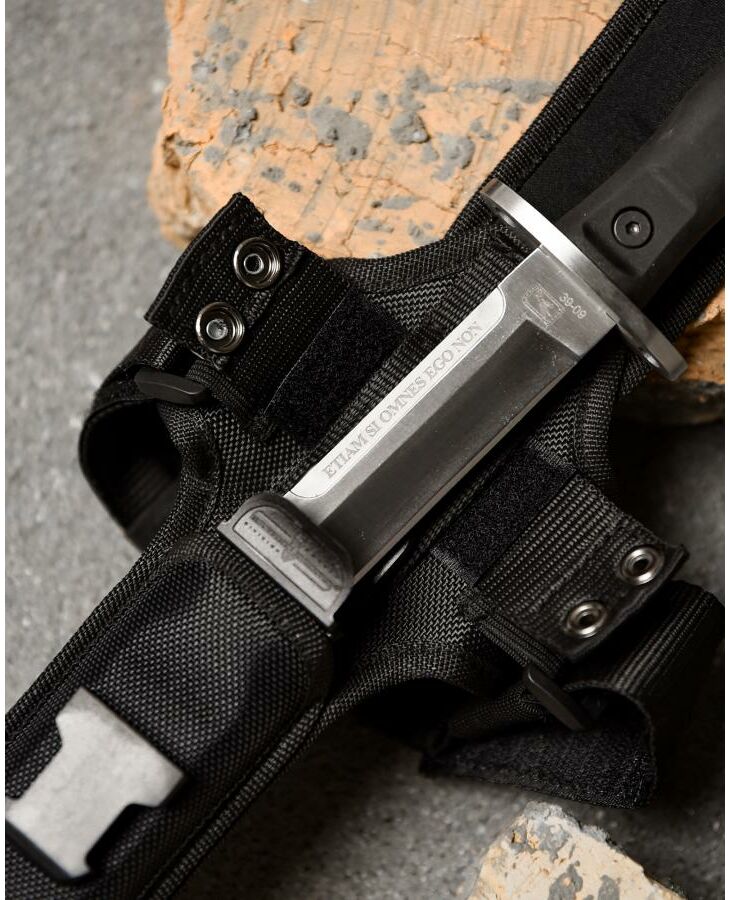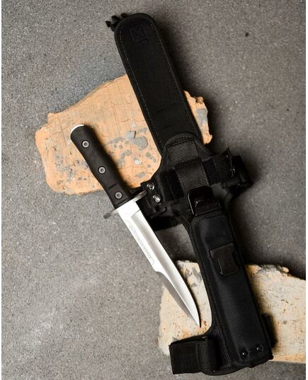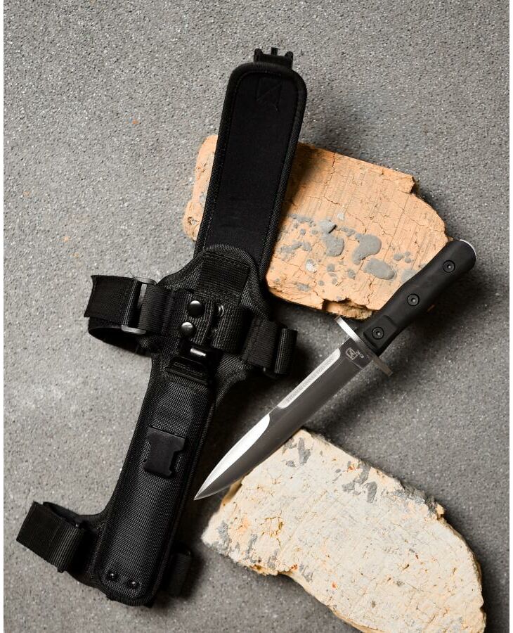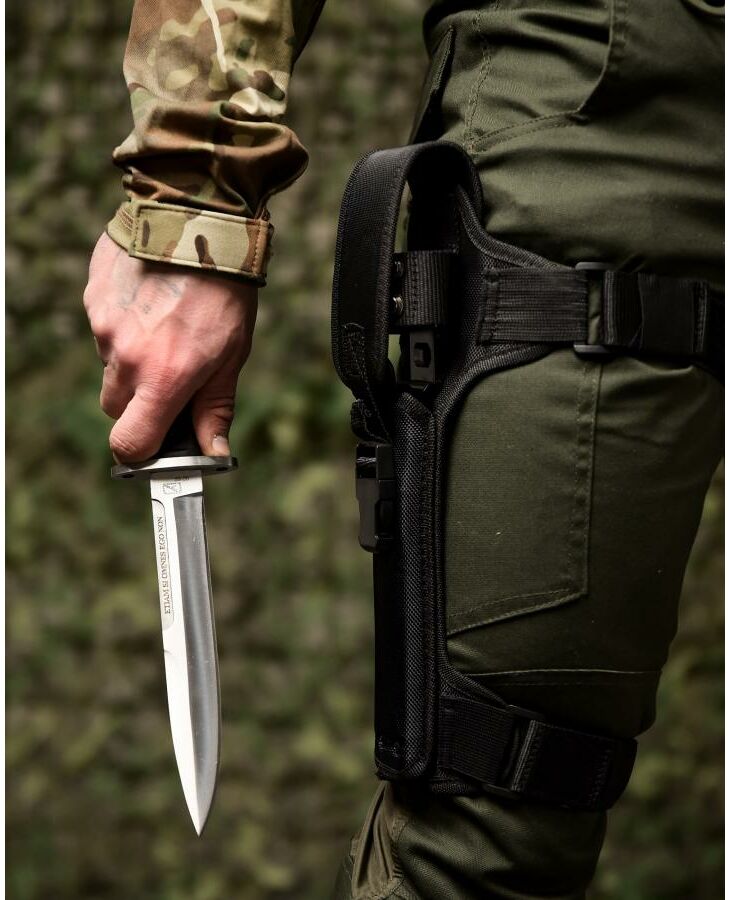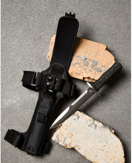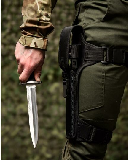 Тактичний ніж з наколінними ножнами для максимального контролю та швидкого доступу.