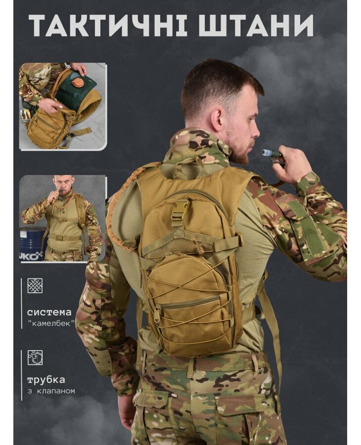 Військова питна система "камелбек" яка дозволяє переносити в собі до 3-х літрів рідини та дозволяє вживати воду через спеціальну трубку з клапаном.