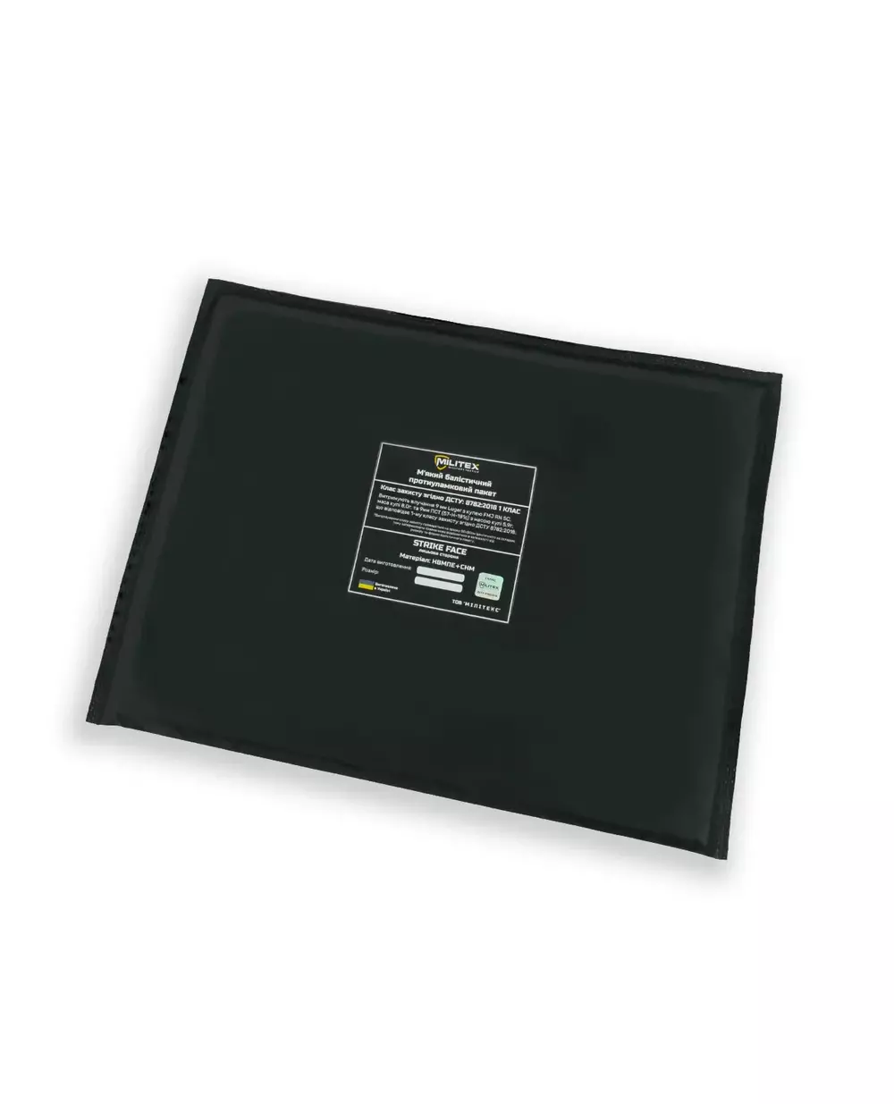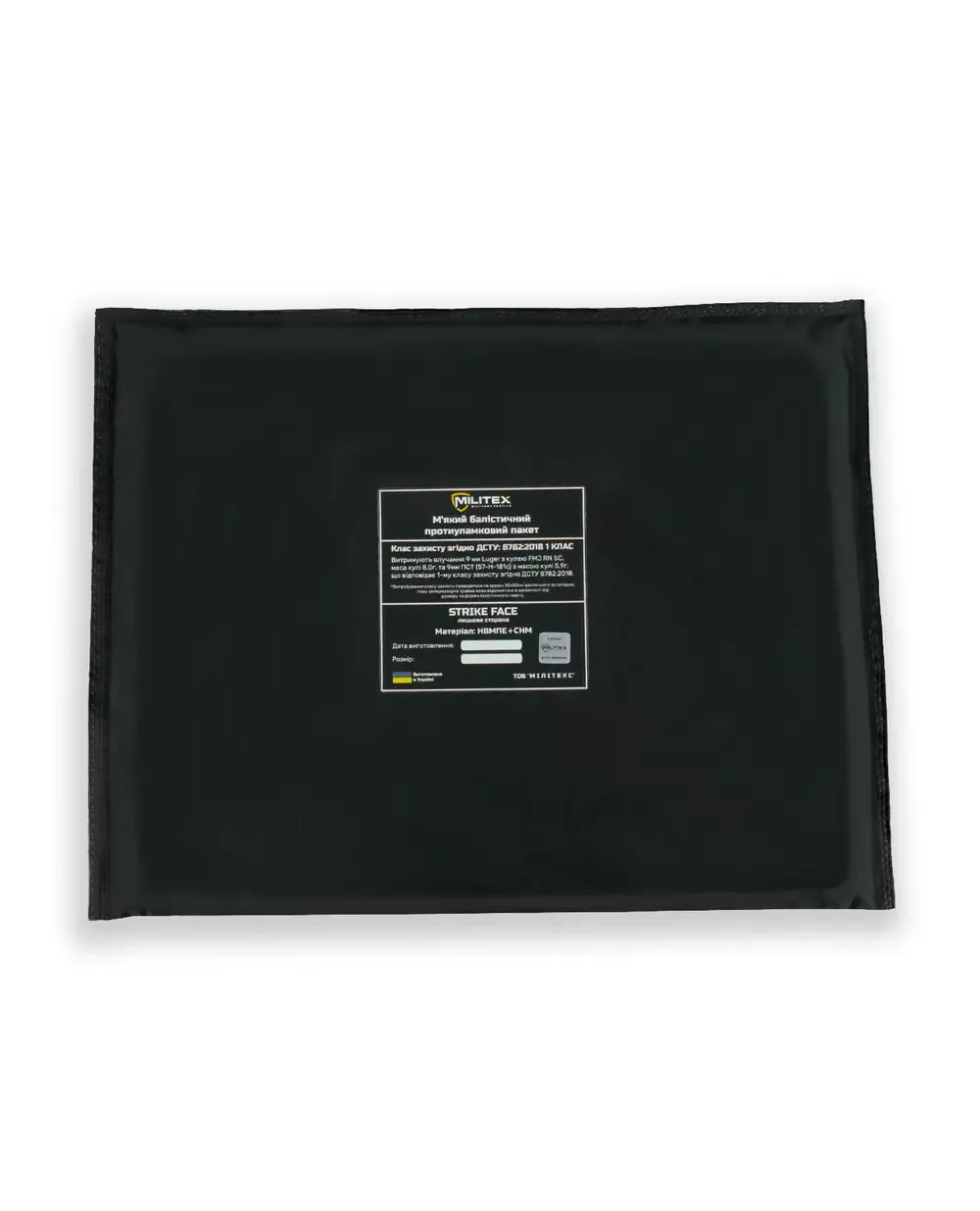 Баллистический пакет изготовлен с соблюдением всех технологических норм и выдержал все испытания: 9х18 мм (скорость 341±1 м/c), 9х19 мм (скорость 401±1 м/c) , соответствующие 1 классу защиты согласно ДСТУ 8782:2018 «Средства индивидуальной защиты».