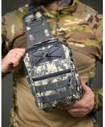 Тактична нагрудна сумка чорного кольору через плече піксель нато ПП8250