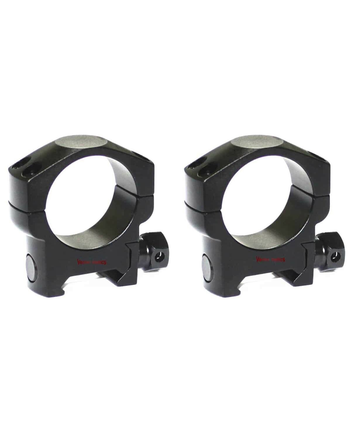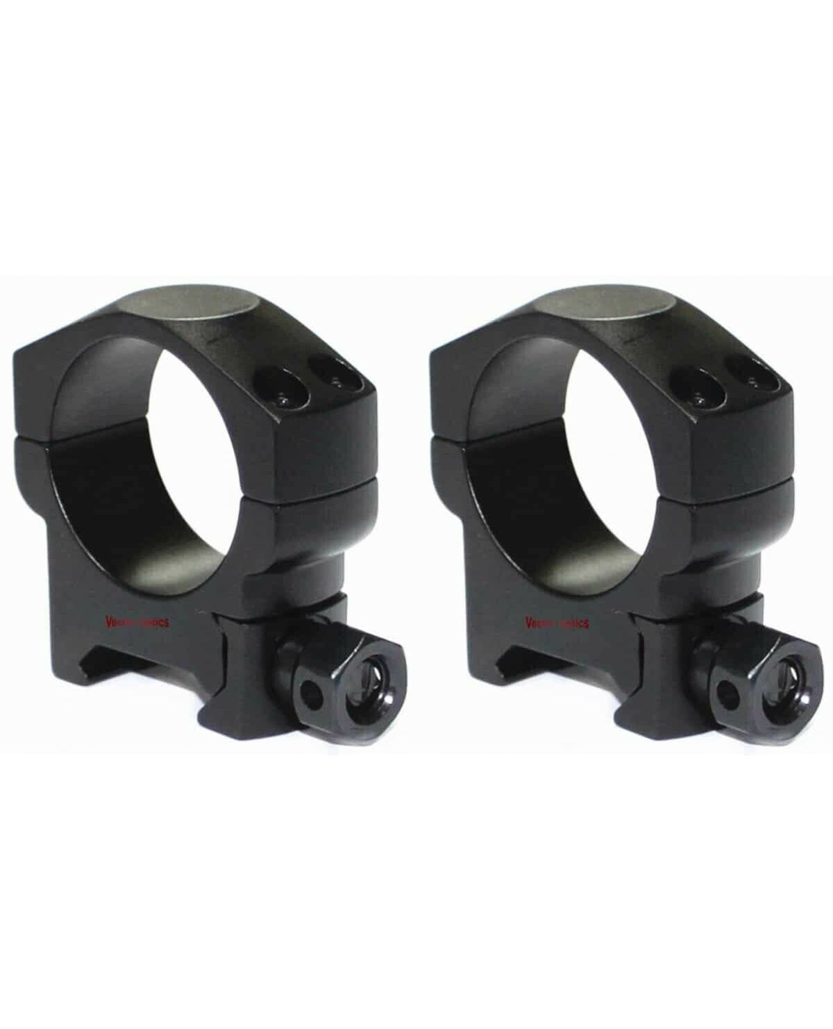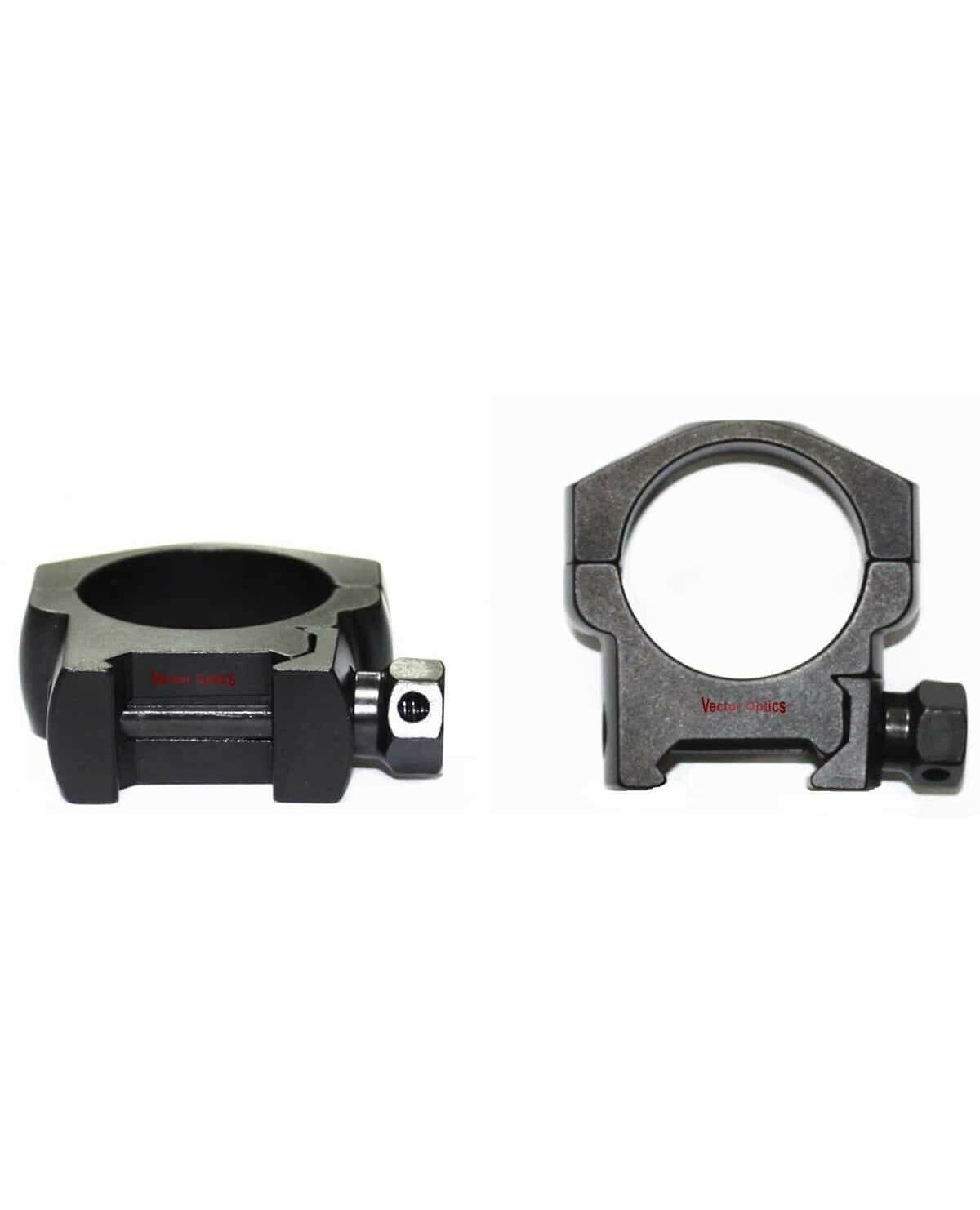 Кольца Vector Optics с внутренним диаметром 30 мм имеют низкий профиль, высота от основания до центральной оси - 21,5 мм. Кольца закрепляют оптический прицел с помощью 4-х винтов на каждое кольцо. Изготовлены на ЧПУ из алюминиевого сплава.
