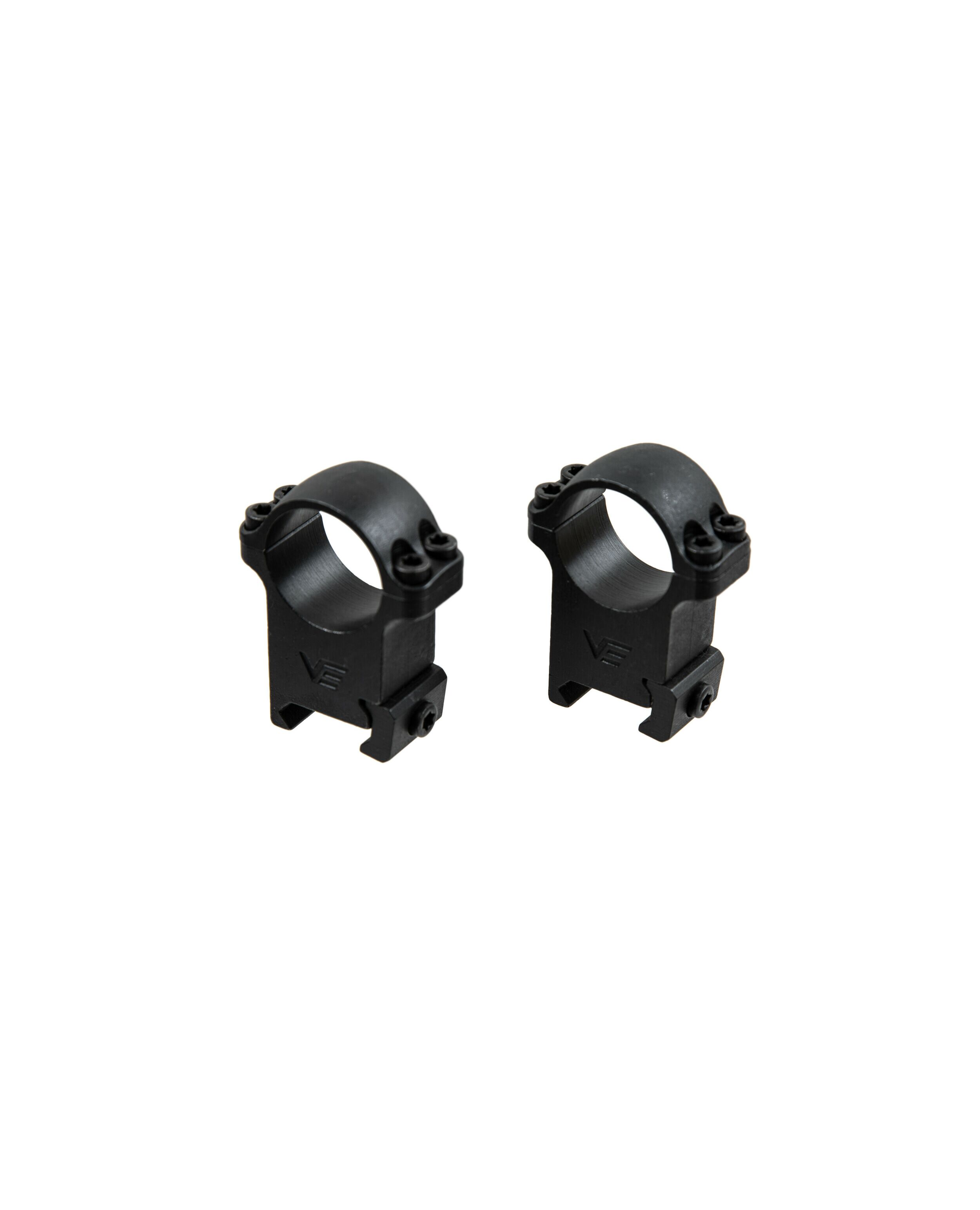 Сверхпрочные кольца диаметром 25,4 мм (1 дюйм) для планки Вивера и Пикатинни 21 мм, изготовлены из стали. Кольца имеют высокий профиль, высота от низа до центральной оси колец – 31 мм (1,25 дюйма). Комплект колец включает шестигранный ключ.