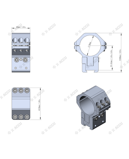 Кольца имеют по 6 винтов Torx для плотного закрепления оптического прицела. Подходит для объектива диаметром 56 мм. Кольца изготовлены на ЧПУ из алюминиевого сплава.
