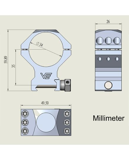 Кольца Vector Optics с внутренним диаметром 34 мм изготовлены из алюминия 6063-Т6, имеют высокий профиль, высота от основания до центральной оси составляет 35 мм. Кольца закрепляют оптический прицел с помощьбю шести винтов на каждом кольце. Кольца предназначены для настоящего огнестрельного оружия. Комплект колец включает шестигранный ключ.