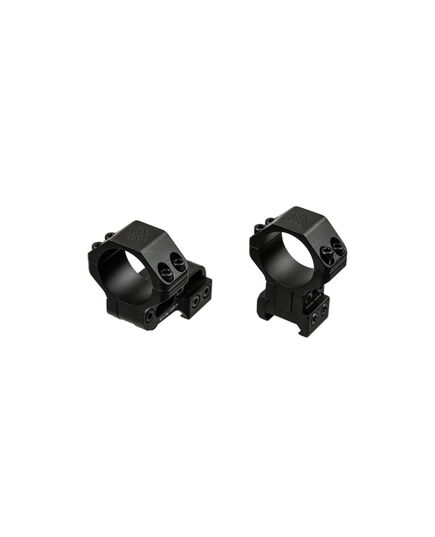 Прочная конструкция: Изготовлены из высококачественного авиационного алюминия, кольца отличаются высокой прочностью и легкостью. Они устойчивы к механическим воздействиям и обеспечивают надежное крепление прицела даже при сильной отдаче. Кольца прочно закрепляют прицел благодаря 4-м винтам на каждом кольце.