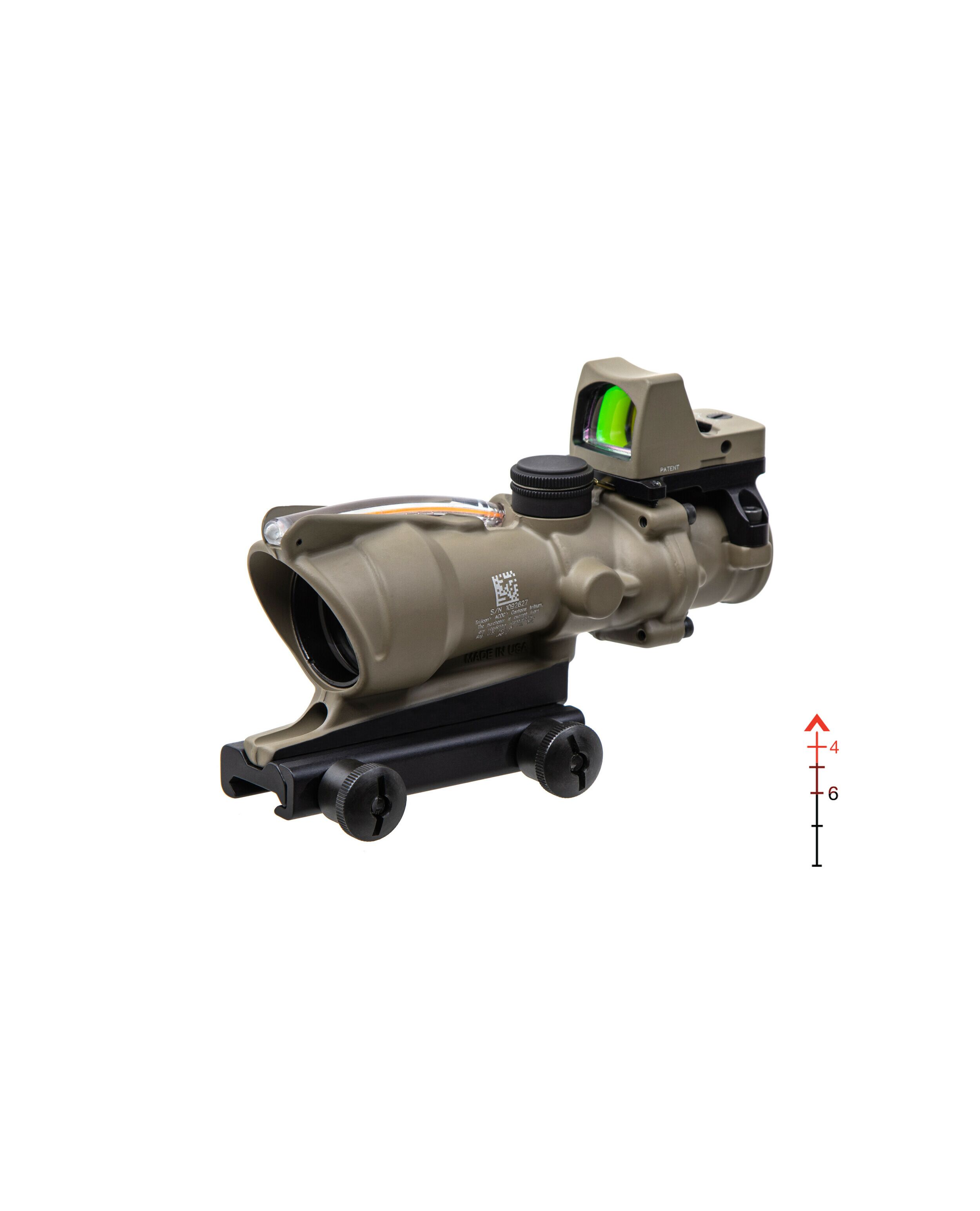 Вооруженные силы США начали улучшать проверенный боями прицел Trijicon ACOG, добавляя небольшой коллиматорный прицел сверху для ближнего боя. Компания Trijicon создала аналогичную модель - TA31-D-100570. Основной прицел Trijicon имеет сетку с двойной подсветкой с использованием волоконной оптики и трития для яркой точки прицеливания в любых условиях освещения. Прицельная сетка позволяет компенсировать падение пули на расстоянии до 800 метров без каких-либо ручных настроек. Сверху находится Trijicon RMR Type 2 с прицельной точкой размером 3,25 МОА.