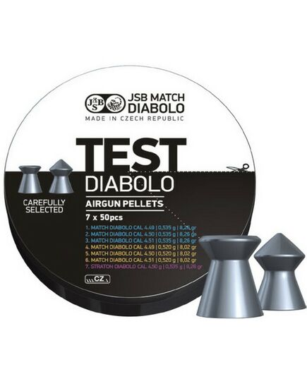 Якщо ви не знаєте, які саме пульки чеської компанії краще купити для своєї пневматичної зброї, в разі, коли підходить калібр 4.5 мм, віддайте перевагу JSB Diabolo Test. Вона містить сім видів свинцевих кульок по п'ятдесят штук кожен вагою близько 0.5 грам, при цьому в набір входять боєприпаси як з плоскою, так і з загостреною головкою.