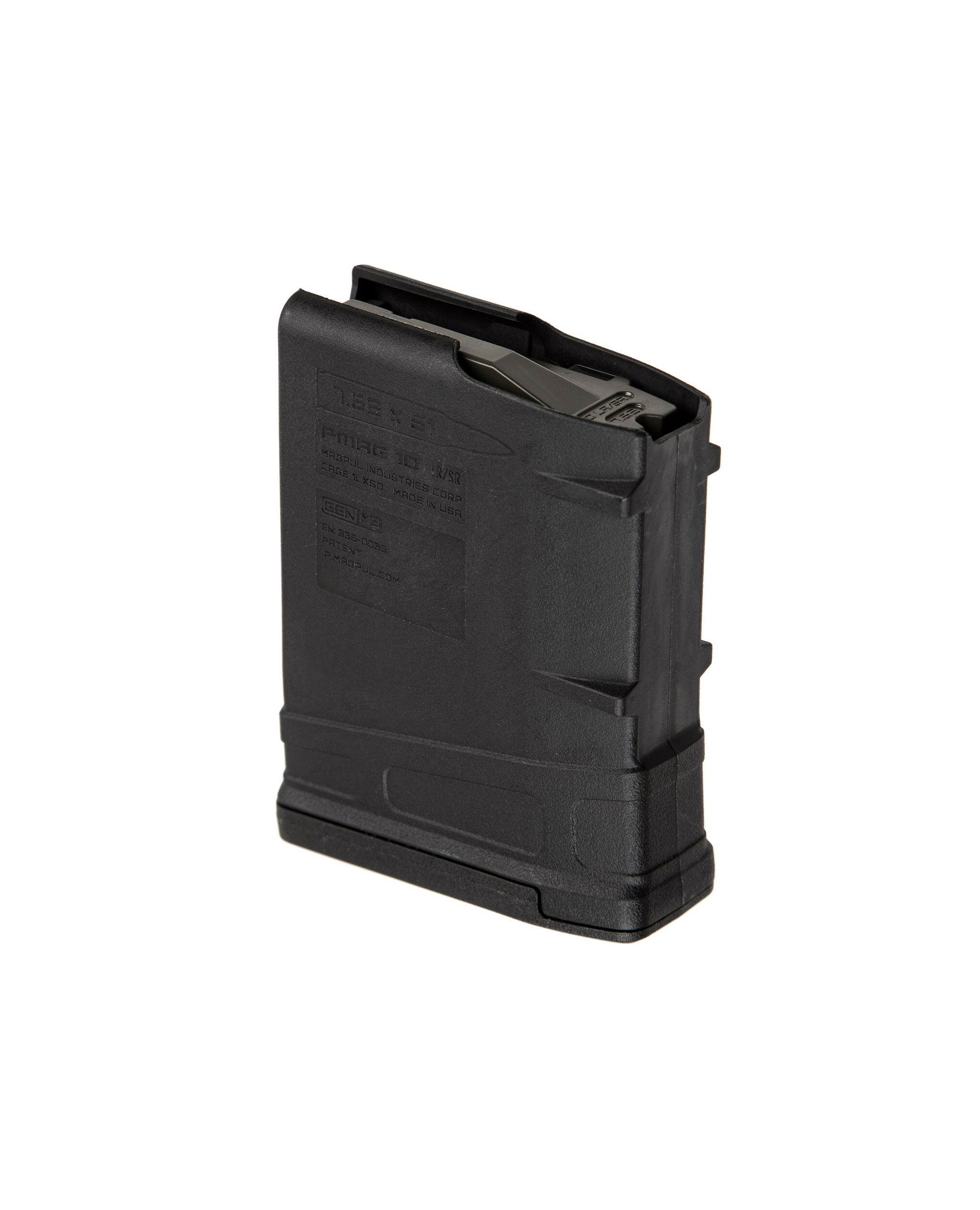 PMAG 10 LR/SR GEN M3 — это надежный магазин для карабинов AR-10 с минимально возможным размером магазина. Он имеет ёмкость на 10 патронов и включает в себя корпус с изгибом, высококачественную пружину из нержавеющей стали, самосмазывающийся толкатель, и защелкивающийся чехол от удара / пыли.