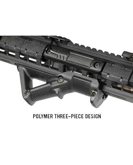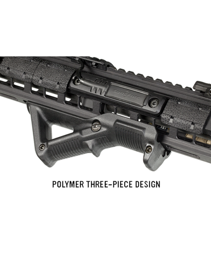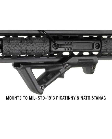 Magpul AFG (Angled Fore Grip) – рукоятка переноса огня, сконструирована и учетом анатомических особенностей человеческого организма. Благодаря своей форме позволяет лучше контролировать оружие в ходе стрельбы. Рука стрелка находиться в естественном положении прямо под осью ствола, что значительно снижает усталость и позволяет минимизировать отдачу оружия и подброс ствола. Позволяет использовать различные хваты, защищает руку стрелка от проскальзывания вперед и прикосновения к стволу. Устанавливается на стандартную направляющую MIL-STD-1913 Picatinny, все необходимые инструменты для монтажа в комплекте.