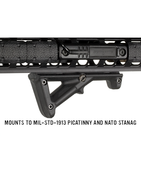Magpul AFG-2 (Angled Fore Grip 2) – рукоятка переноса огня, сконструирована и учетом анатомических особенностей человеческого организма. По сравнению с оригинальной рукоятью AFG, модель №2 более короткая и широкая, что позволяет устанавливать её на более широкий диапазон цевий и сочетать её с широким ассортиментом других аксессуаров. Благодаря своей форме позволяет лучше контролировать оружие в ходе стрельбы. Рука стрелка находиться в естественном положении прямо под осью ствола, что значительно снижает усталость и позволяет минимизировать отдачу оружия и подброс ствола. Позволяет использовать различные хваты, защищает руку стрелка от проскальзывания вперед и прикосновения к стволу. Устанавливается на стандартную направляющую MIL-STD-1913 Picatinny, все необходимые инструменты для монтажа в комплекте.