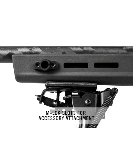 Также ложе оснащено разнообразными типами для крепления ремня и системой M-LOK.