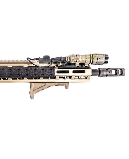 Благодаря форме рукоятки и ее расположению стрелок инстинктивно держит оружие правильно, мышцы рук не перенапрягаться, что позволяет вести прицельную стрельбу длительное время, также правильный хват позволяет значительно снизить влияние импульса отдачи на точность быстрой серии выстрелов. Все необходимые крепежи M-LOK входят в комплект поставки.