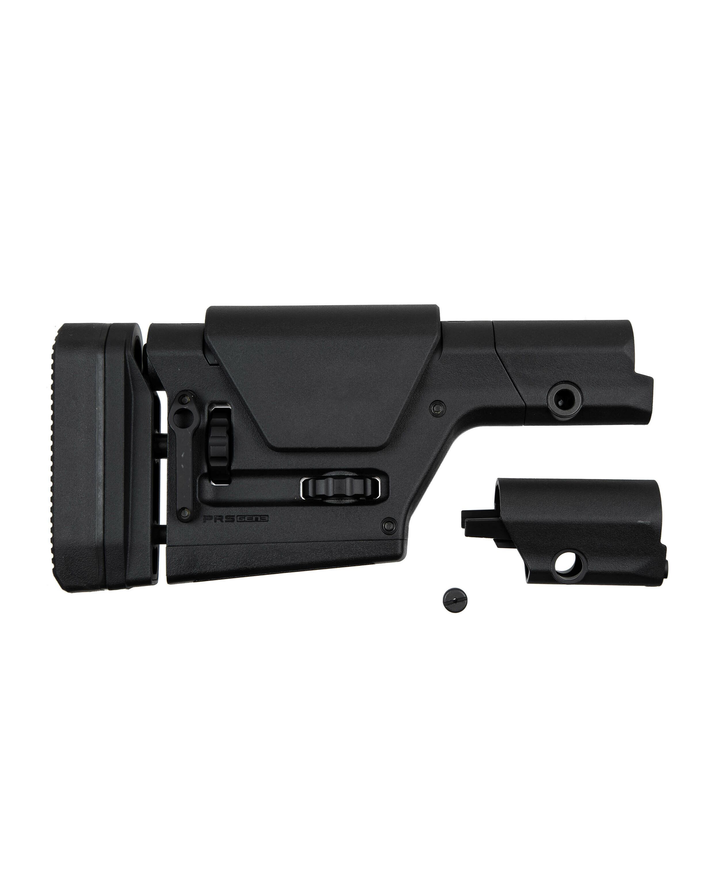 PRS GEN3 — это высокоточный приклад для платформ AR15/M16 и AR10/SR25 с возможностью регулировки длины приклада и высоты щеки без использования инструментов.