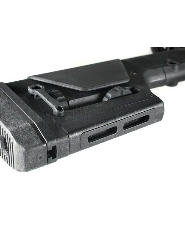 Благодаря надежной регулировке длины тяги и высоты щеки с помощью алюминиевых фиксаторов (которые в свою очередь обработаны покрытием Melonite для повышения корозийной стойкости), приклад PRS GEN3 (Precision Rifle/Sniper) предназначен прежде всего для полуавтоматических снайперских винтовок. Включает регулируемый по наклону/высоте резиновый затыльник и 2 точки крепления QD для антабок(спереди и сзади приклада), а также слоты M-LOK® на нижней части для крепления монопода.