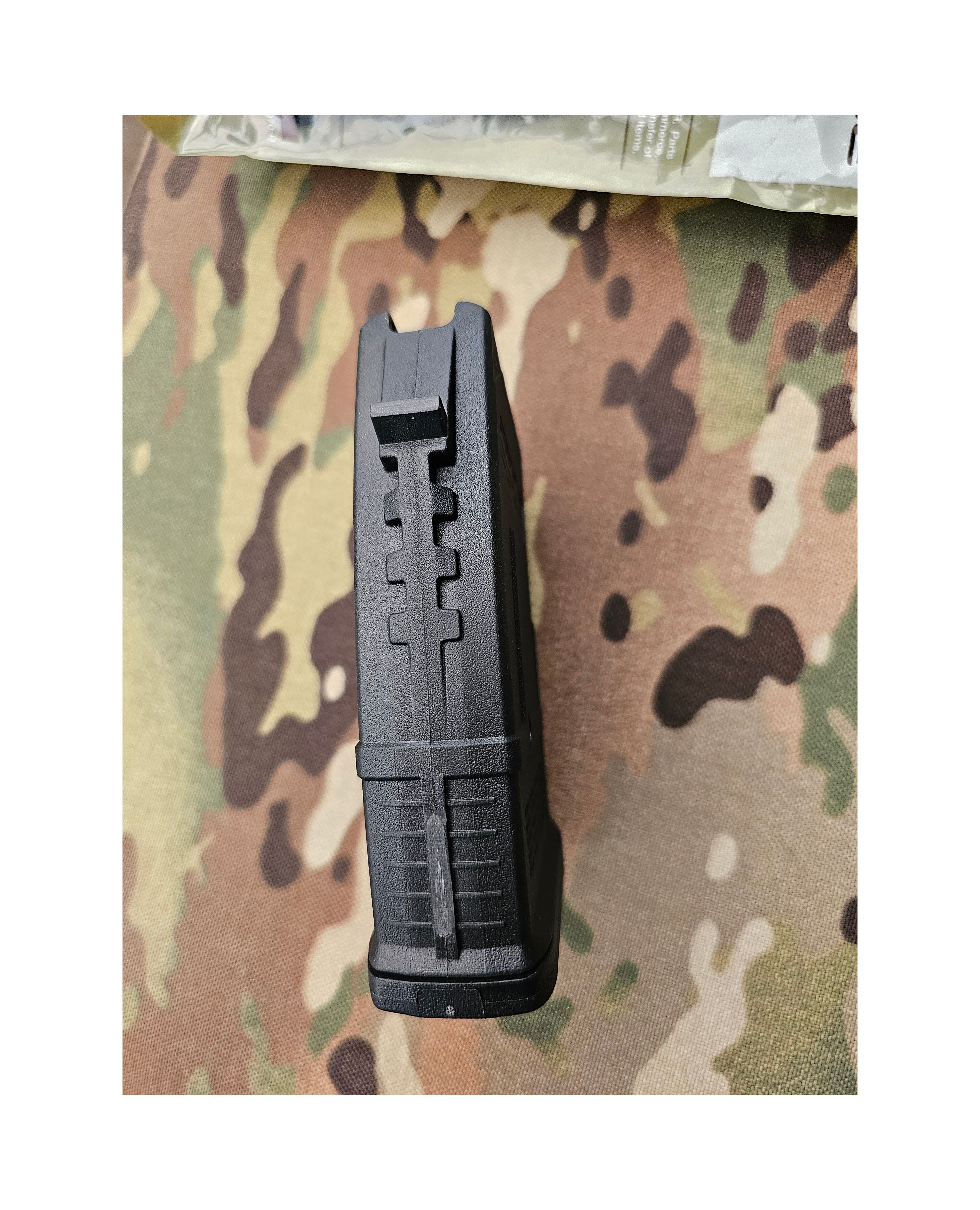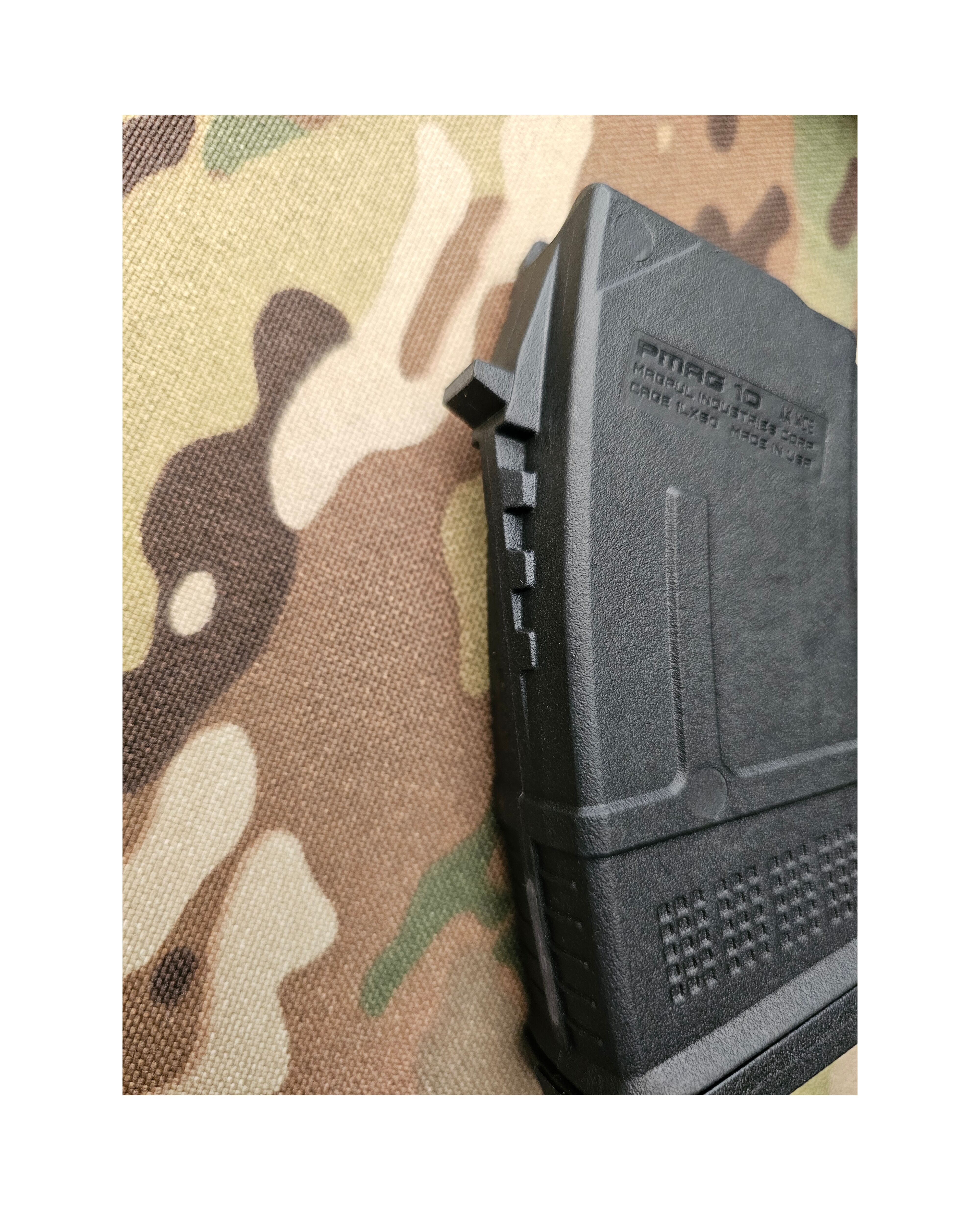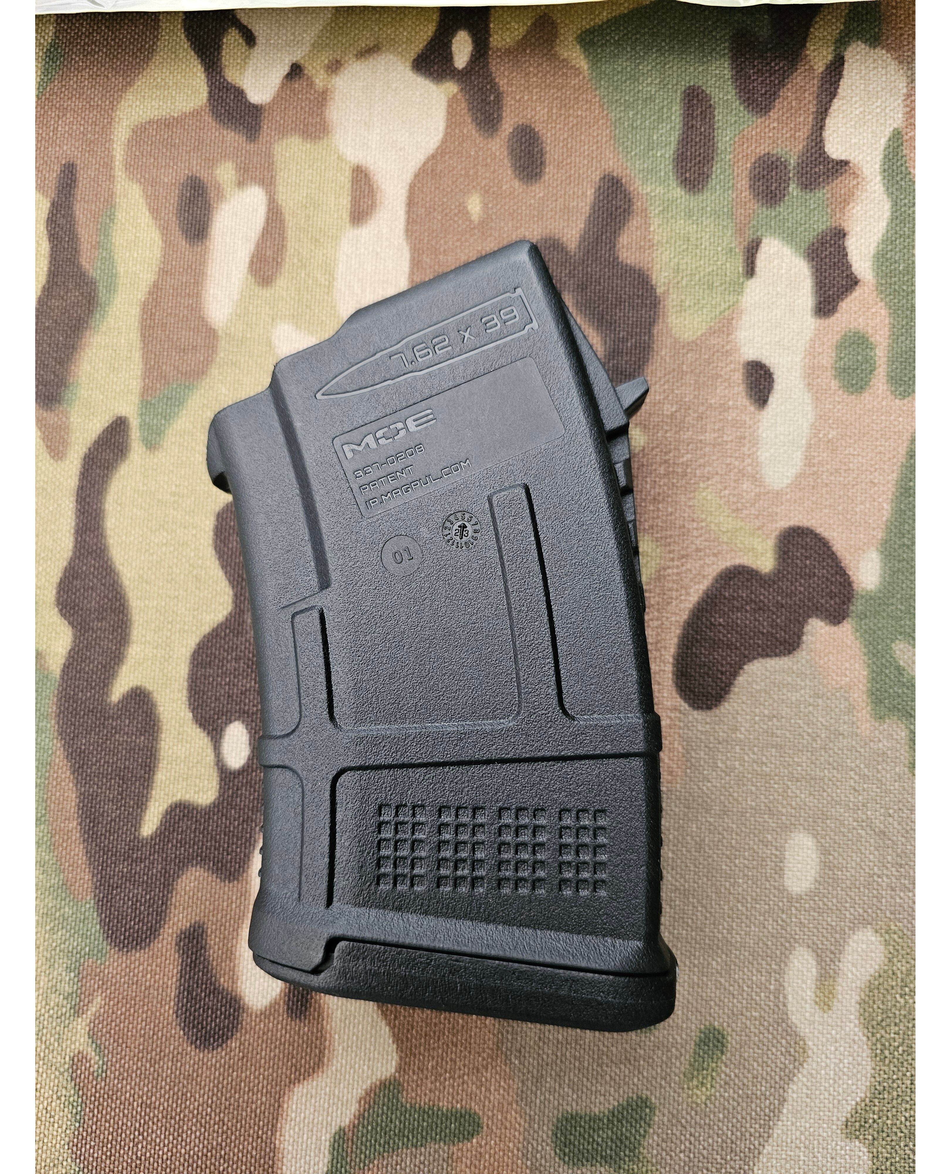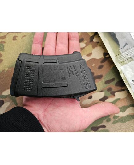 Высококачественный полимерный магазин на 10 патронов калибра 7,62х39. Легкий, компактный, очень прочный магазин обеспечивает надежную и бесперебойную подачу патронов. Прост в обслуживании и не требует дополнительных инструментов для разборки. Эргономичная форма тыльника и специальные насечки способствуют удобному и надежному удержанию магазина, высокой скорости смены магазина. Также короткий магазин удобен при стрельбе из положения лежа.