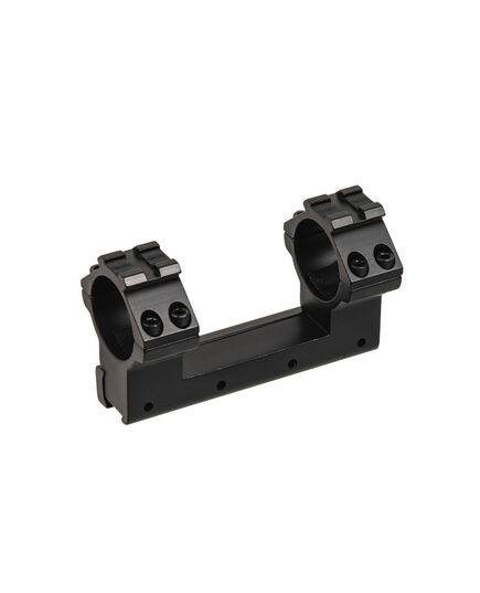 Моноблок предназначен для установки оптических прицелов с диаметром центральной трубы 30 мм на пневматические винтовки с крепление "ласточкин хвост". Моноблок уникален тем, что имеет сверху на полукольцах крепление Вивер/Пикатинни для установки коллиматорного прицела, фонаря, ЛЦУ, либо другого аксессуара.