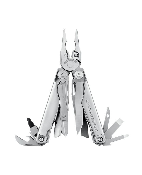 Leatherman Surge - один из двух самых крупных мультиинструментов компании Leatherman , по-настоящему СИЛЬНЫЙ МУЛЬТИИНСТРУМЕНТ, обладает самыми большими пассатижами и самыми крупными инструментами. Уникальная возможность смены полотна пилы, большой и малый битодержатели, 4 самых необходимых лезвия легко доступны в сложенном состоянии. Surge сделан для тяжелой работы и рук, способных ее выполнить.