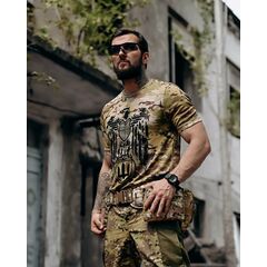 Размер M Рост 175 см Вес 75 кг Тактическая футболка Coolmax с принтом TDF Лёгкая и функциональная тактическая футболка из ткани Coolmax , разработанная для активного использования в жаркую погоду и при высоких нагрузках. Материал эффективно отводит влагу и быстро высыхает , обеспечивая...