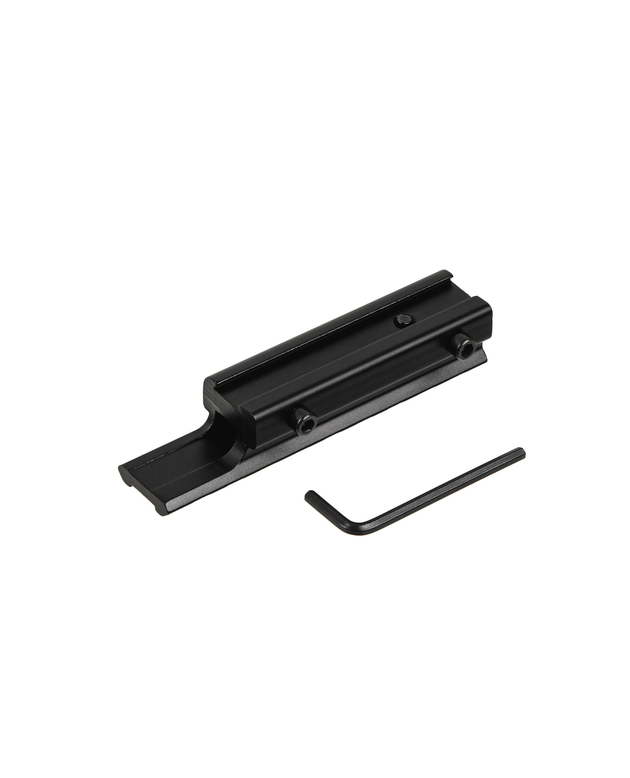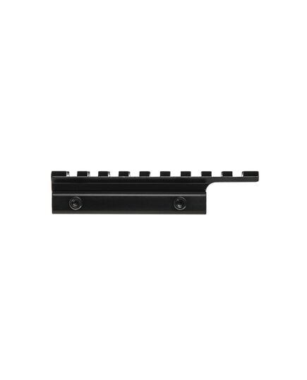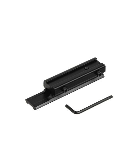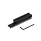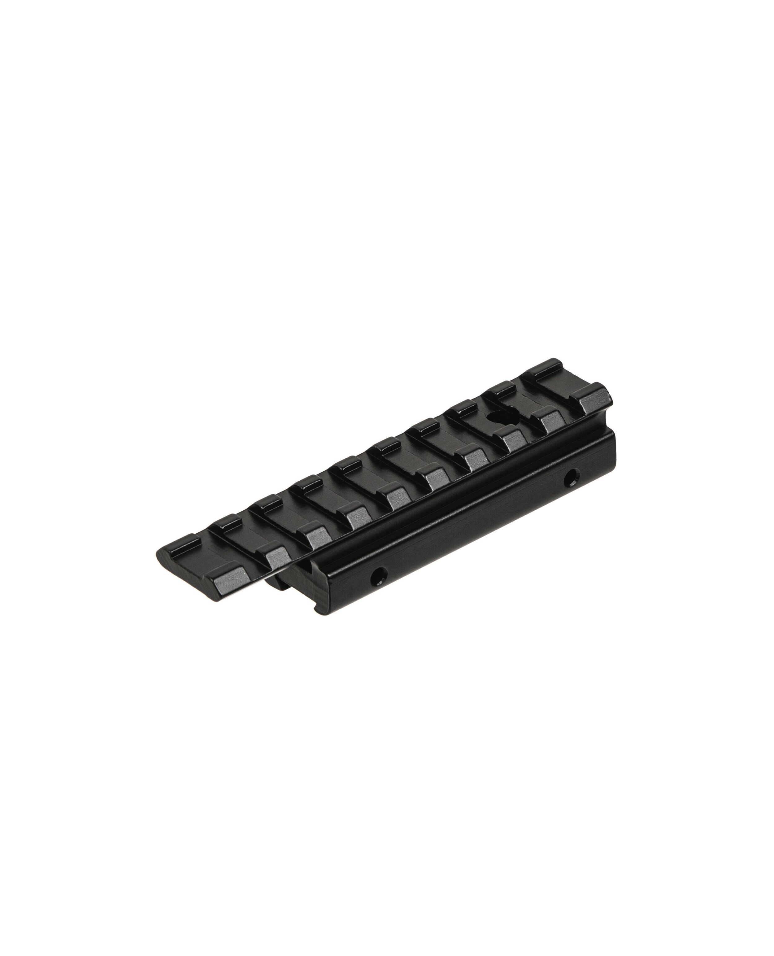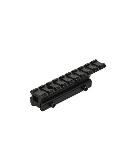 Цельнометаллический переходник с ласточкиного хвоста на планку Вивер/Пикатинни со смещением. Корпус изготовлен из высокопрочного алюминиевого сплава черного матового цвета, ударопрочный с нижним противоударным штифтом. Имеет стиль райзера. Длина: нижняя часть 11 мм, основание типа «ласточкин хвост» 75 мм; верхняя направляющая 100 мм. Высота 16.5 мм от нижнего основания.