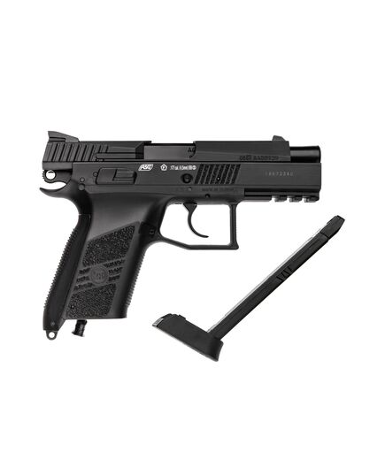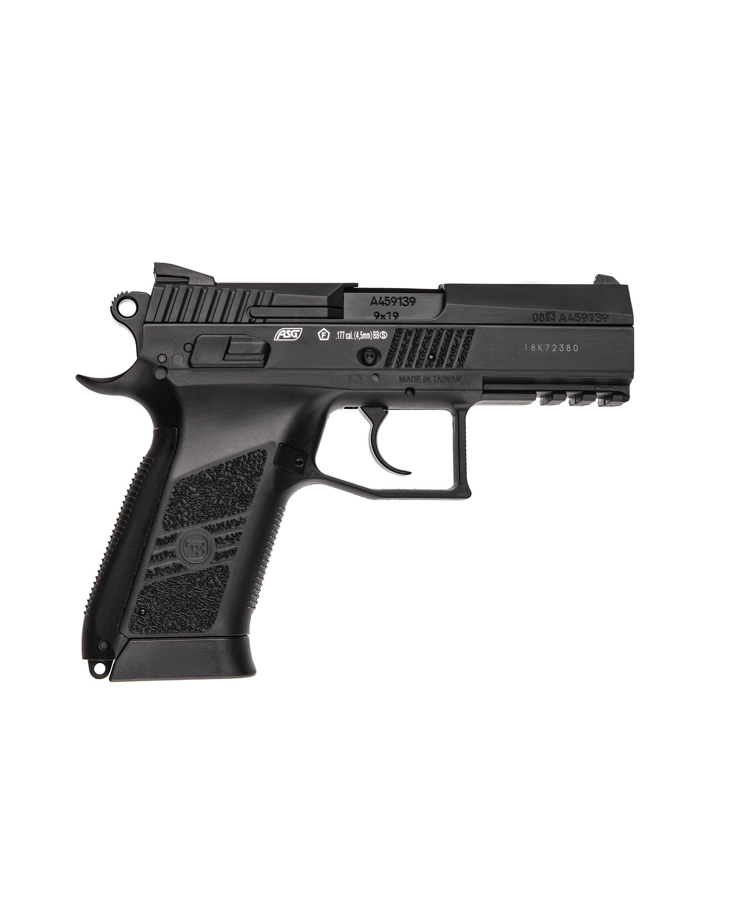 Внешний дизайн этого пистолета полностью позаимствован у чешского пистолета CZ-75, а именно – у его модификации CZ 75 P-07 Duty. Эта тактическая вариация знаменитого пистолета имела измененный по форме затвор-кожух, изготовленный из полимера. В случае с пневматической версией ASG кожух все же изготовлен из металла. Более того, конструкция пистолета позволяет осуществлять передергивание затвора-кожуха, имитируя использование реального пистолета (присутствует даже функция затворной задержки). В стволе есть нарезы для установки саунд-модератора. Интегрированный под ствол профиль Weaver позволяет при необходимости установить фонарь или целеуказатель.