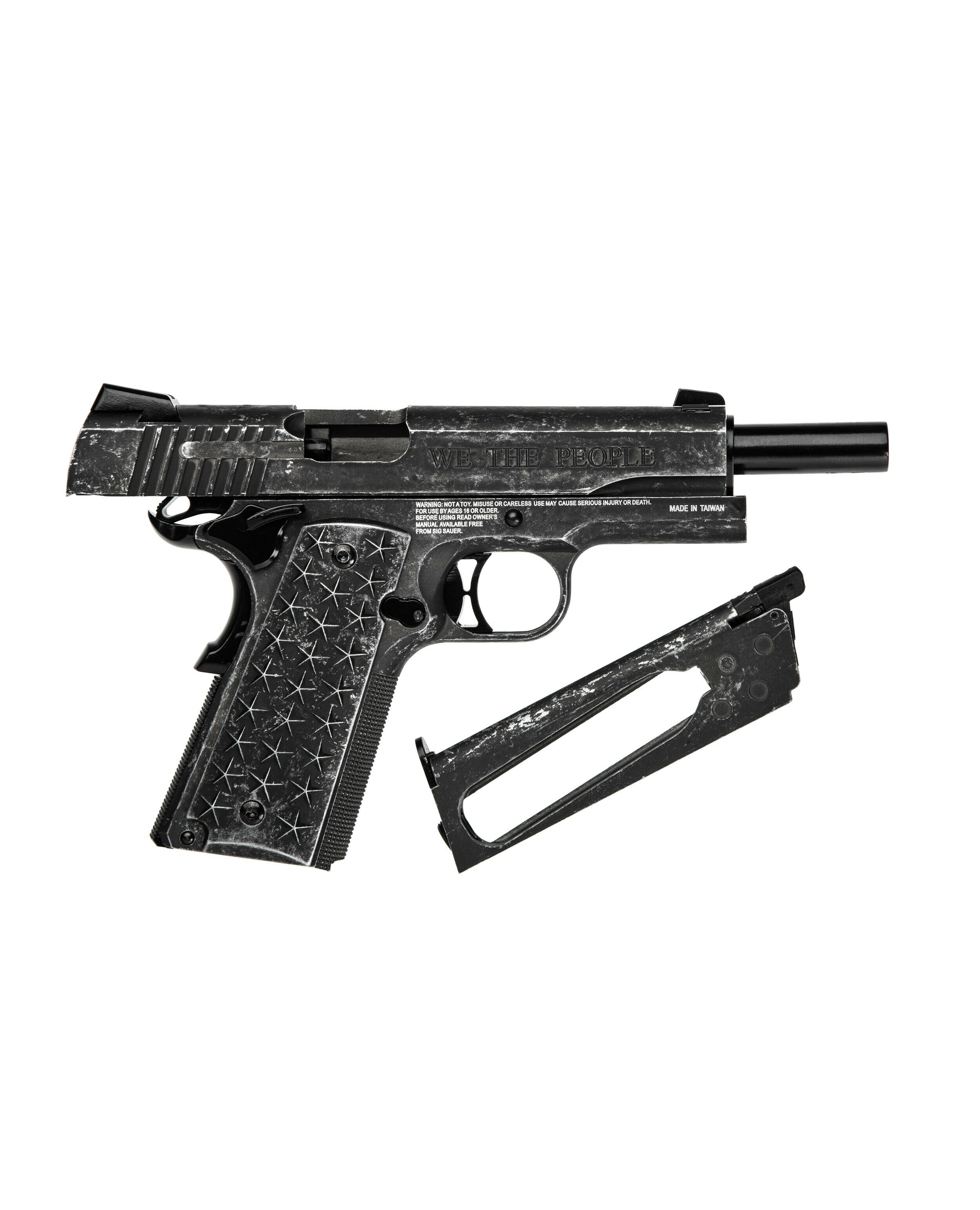 Модель Sig Sauer 1911 "We The People" имеет максимальную схожесть с оригиналом: реальный вес и габариты пистолета идентичны. Основной особеностью является простота, легкость разборки и непревзойденный дизайн, который сложно забыть.