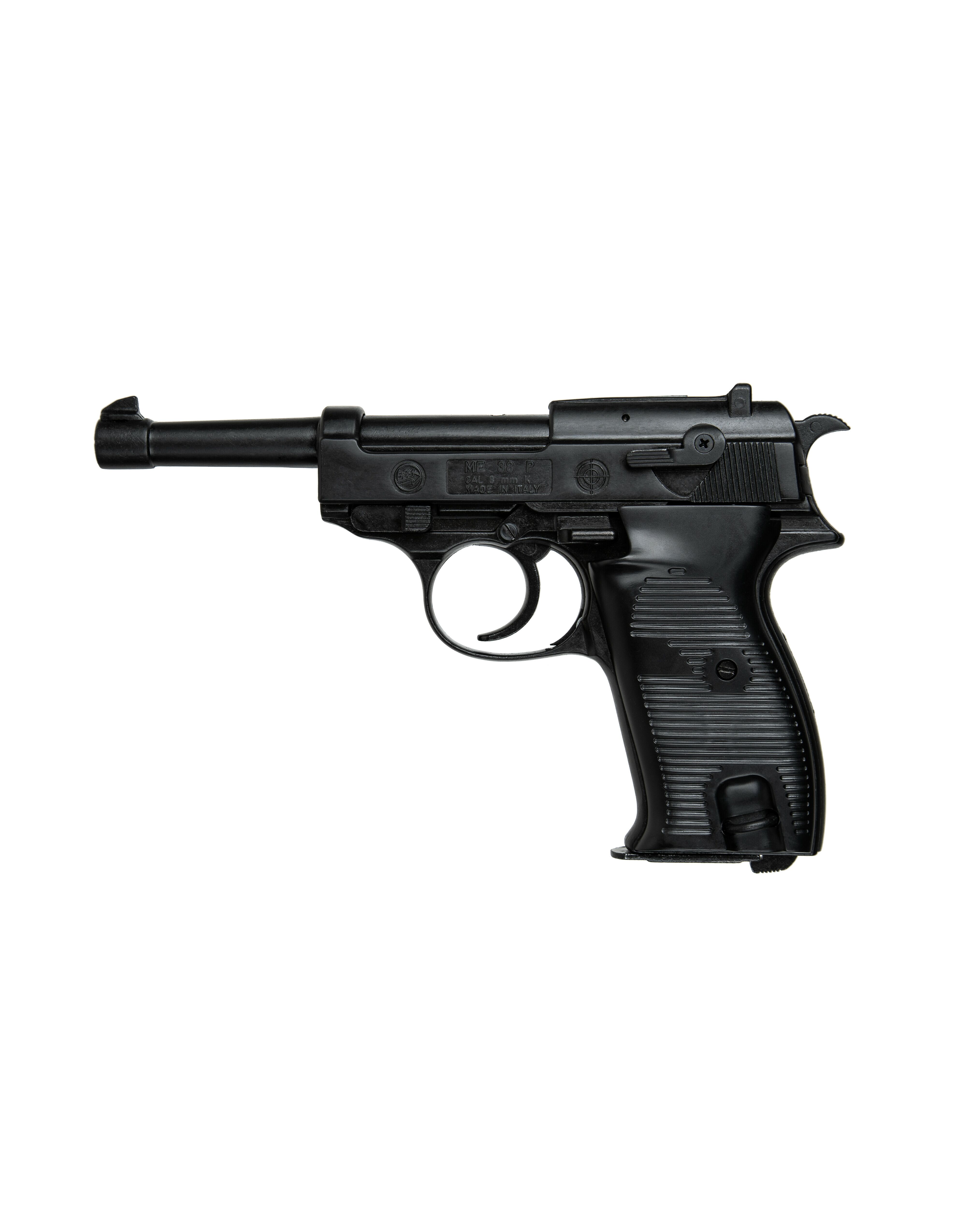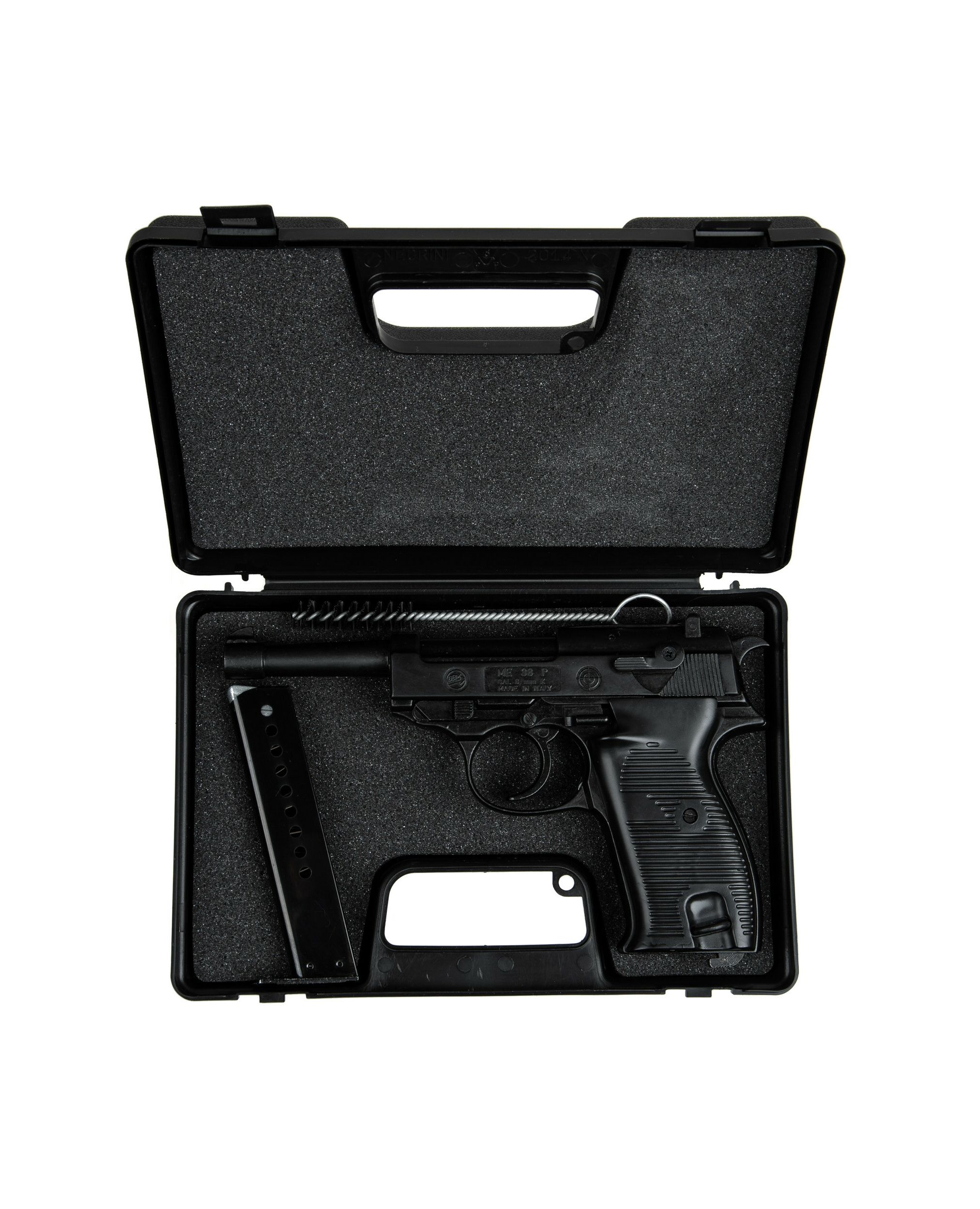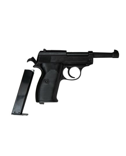 Сигнальный пистолет от компании Bruni 38P кал.8 является копией легендарного Walther P38. Данное приспособление предназначено для отстрела холостых патронов калибра 8мм. Затвор и рама выполнены из цинкового сплава, что имитирует вес пистолета приближенный к оригиналу. Накладки на рукоядь выполнены из пластика. УСМ по способу взвода, одинарного действия (Single Action) - нажатие на спусковой крючок не взводит курок, а просто совершает выстрел, взвод курка происходит за счёт движения затвора. Также пистолет оборудован ручным предохранителем.