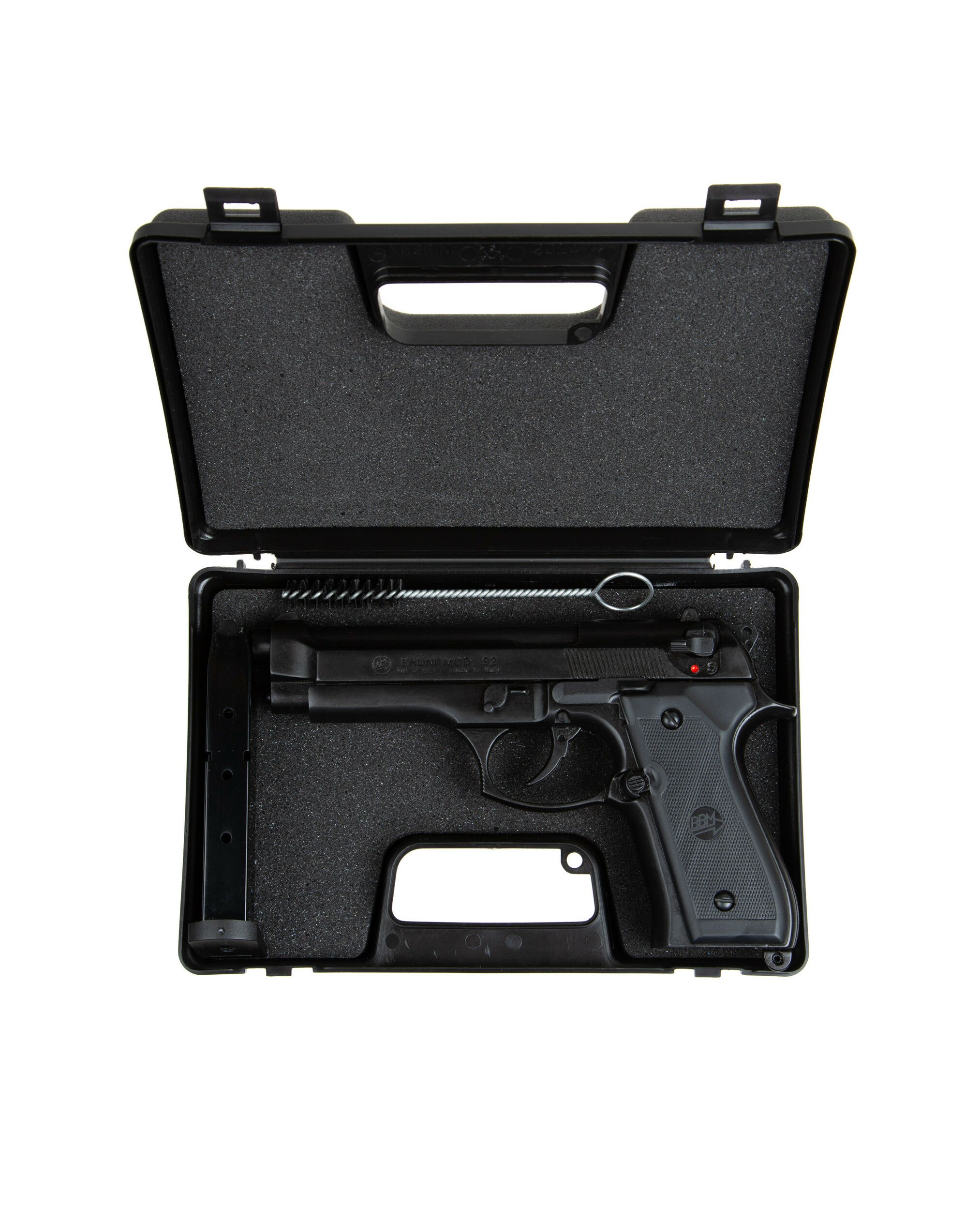 Пистолет поставляется в удобном для транспортировки и хранения пластиковом кейсе, в комплекте с щёткой для чистки.
