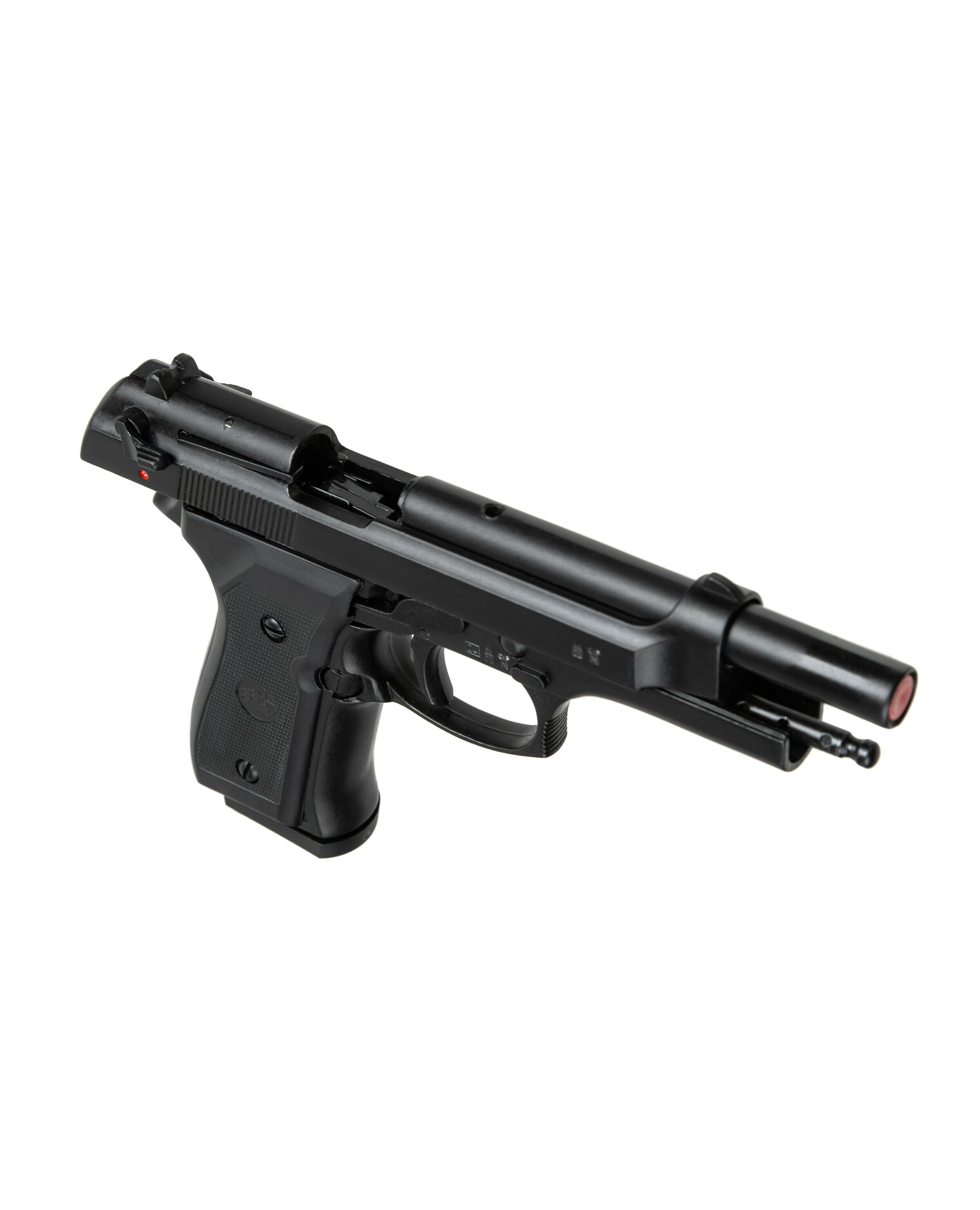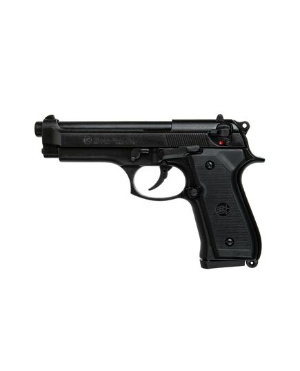 Сигнальный пистолет от компании Bruni 92 кал.9 РАК является копией знаменитой во всём мире Beretta 92. Данное приспособление предназначено для отстрела холостых патронов калибра 9мм РАК. Затвор и рама выполнены из цинкового сплава, что имитирует вес пистолета приближенный к оригиналу. Накладки на рукоядь выполнены из полимерных материалов. УСМ по способу взвода, двойного действия (Double Action) - курок можно взводиться, как вручную, так и при нажатии на спусковой крючок. Также пистолет оборудован ручным предохранителем.