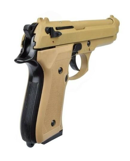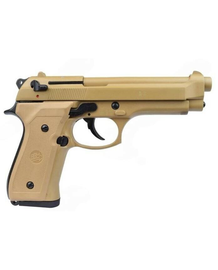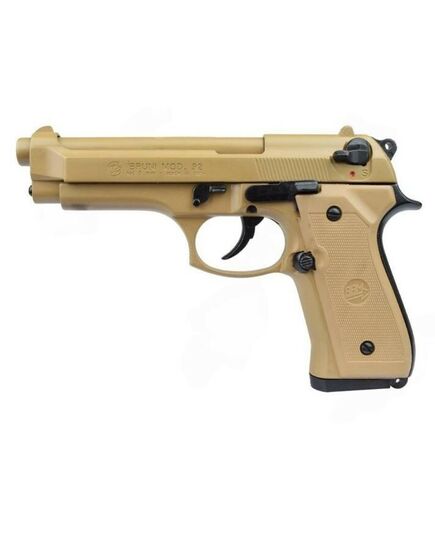 Сигнальный пистолет от компании Bruni 92 кал.9 РАК является копией знаменитой во всём мире Beretta 92. Данное приспособление предназначено для отстрела холостых патронов калибра 9мм РАК. Затвор и рама выполнены из цинкового сплава, что имитирует вес пистолета приближенный к оригиналу. Накладки на рукоядь выполнены из полимерных материалов. УСМ по способу взвода, двойного действия (Double Action) - курок можно взводиться, как вручную, так и при нажатии на спусковой крючок. Также пистолет оборудован ручным предохранителем.