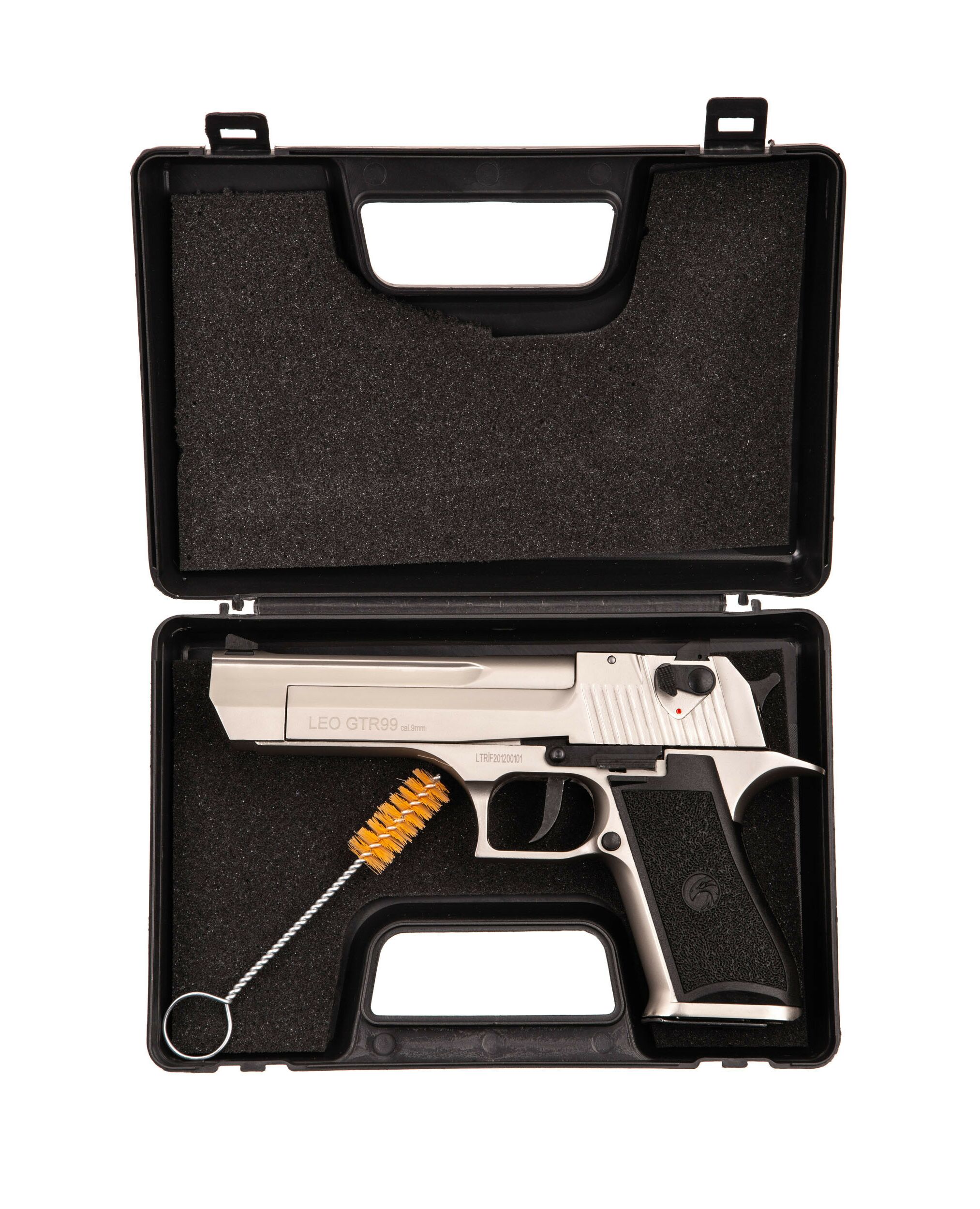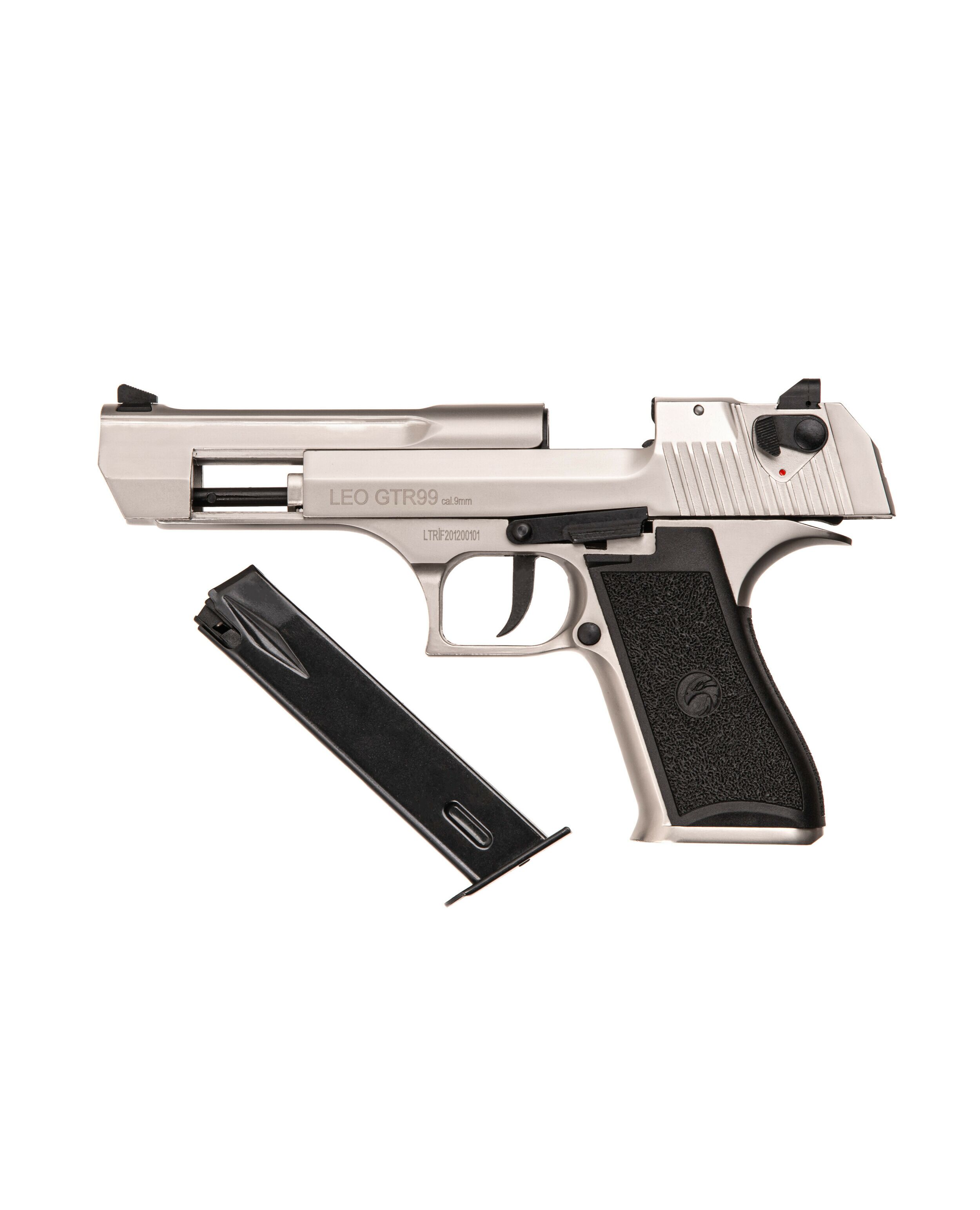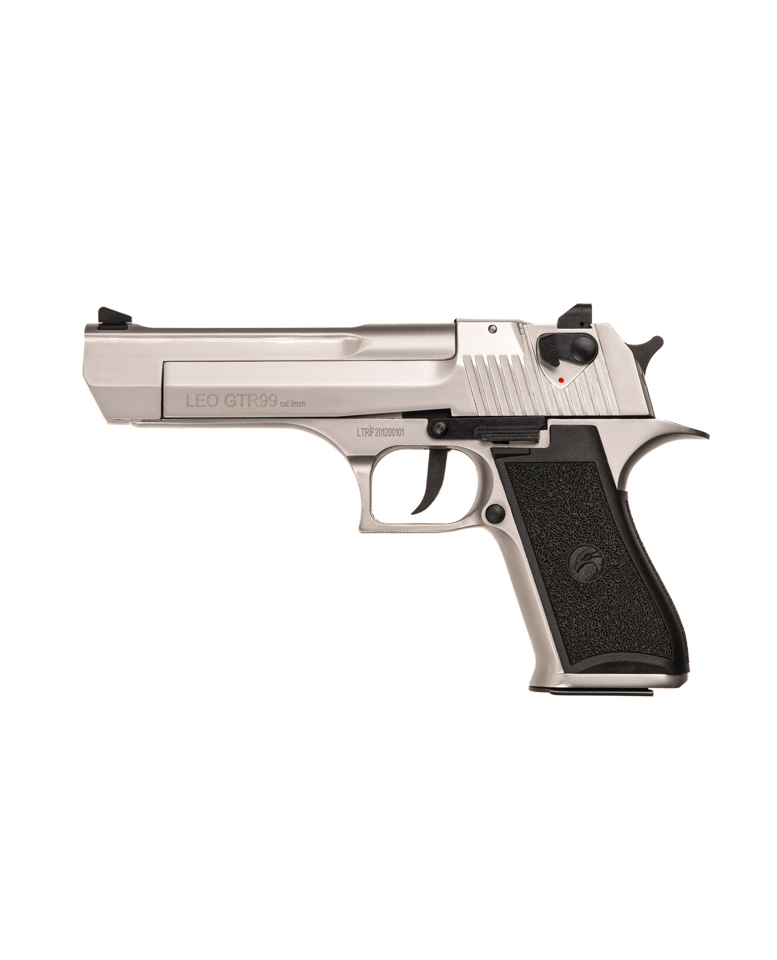 Сигнальний пістолет Leo GTR99 від компанії Carrera Arms, є копією легендарного пістолета Desert Eagle, який добре знайомий нам по численним фільмам та компьютерним іграм. Пістолет призначений для стрільби холостими 9мм. патронами, спуск одинарної дії, запобіжник прапорцевого типу розташований з двох сторін, що буде дуже зручно як для правші, так і для шульги, і запобігає випадковому пострілу. Подачу боєприпасів забезпечує дворядний магазин на 17 патронів + 1 в стволі. Рама пістолета і затвор з легкого сплаву, тож він легший за оригінал на 25%. Використовувати даний сигнальний пістолет, з огляду на його ідентичність справжньому бойовому пістолету, можливо не тільки як стартовий при проведенні спортивних заходів, але і для холощення, тренувань поводження зі зброєю та тренувань із самооборони. Гучний постріл холостого патрона дозволить відлякувати різного роду небезпечних тварин, подавати сигнали в екстрених ситуаціях, а також використовувати в якості реквізиту при відео-зйомках і театральних постановках.