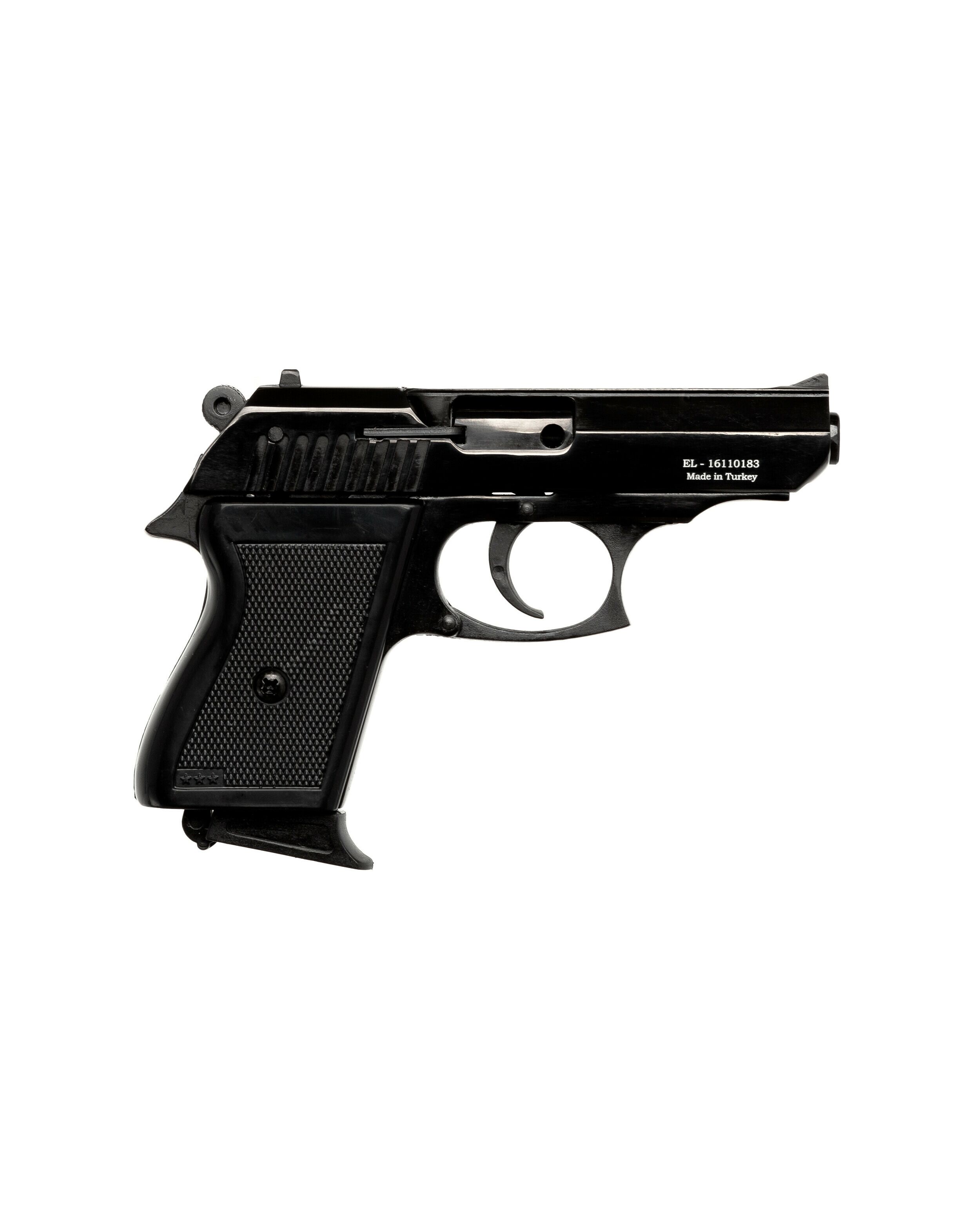 Пистолет рассчитан на стрельбу шумовыми патронами калибра 9 мм.