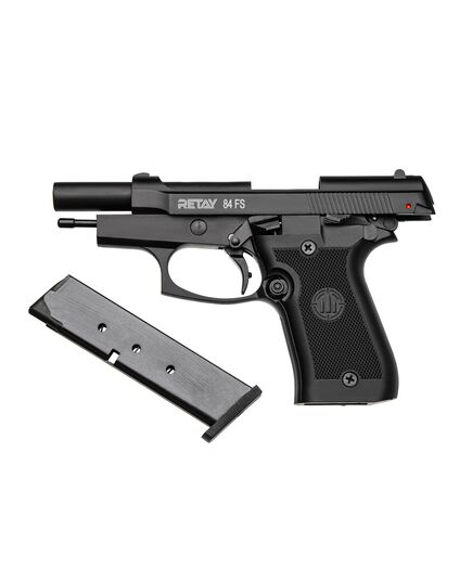 Retay 84FS - репліка пістолета Beretta 84FS і в якості боєприпасів використовуються шумові патрони калібру 9 мм.