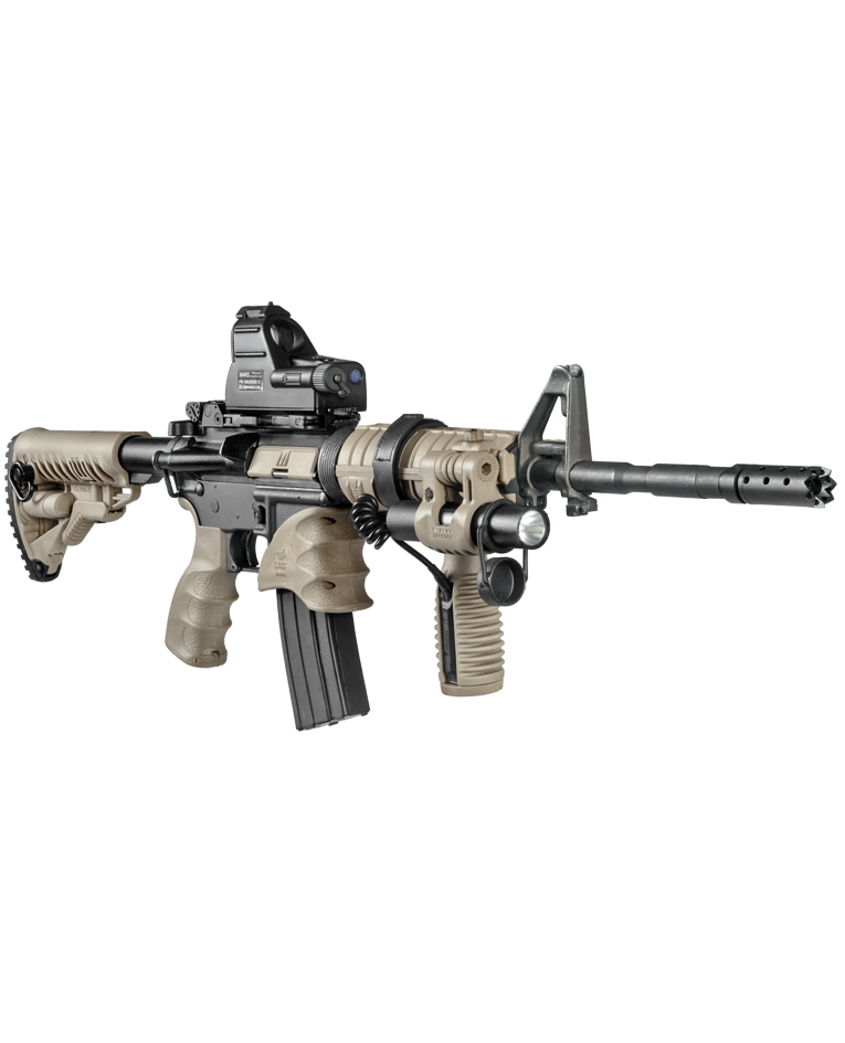 Пистолетная рукоятка FAB Defense для AR-образных карабинов. Эргономичный дизайн делает обращение с оружием более комфортным. Угол наклона рукояти снижает усталость кисти при длительном удержании. Позволяет быстро изменять сектор стрельбы. Рукоять изготовлена из прочного полимерного композита. Есть отсек для хранения запасных батареек.