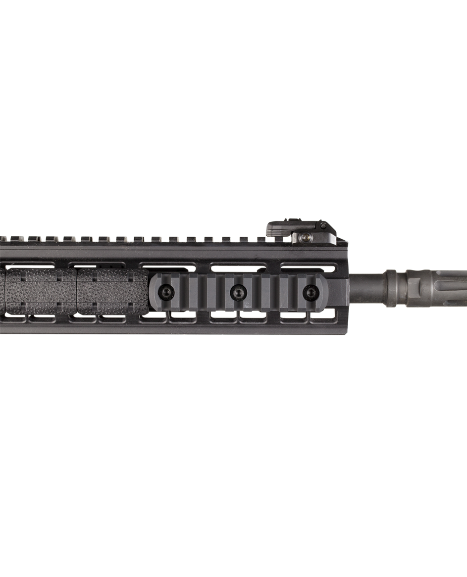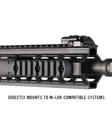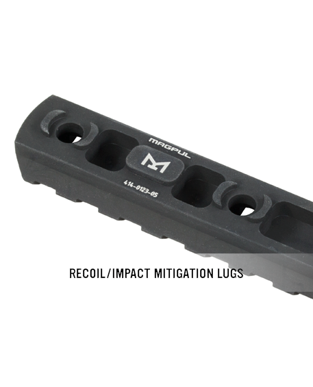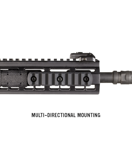 Обтекаемая форма и отсутствие острых углов препятствуют зацепам планки за снаряжение или одежду. Планка комплектуется креплениями для установки на цевья системы M-LOK.