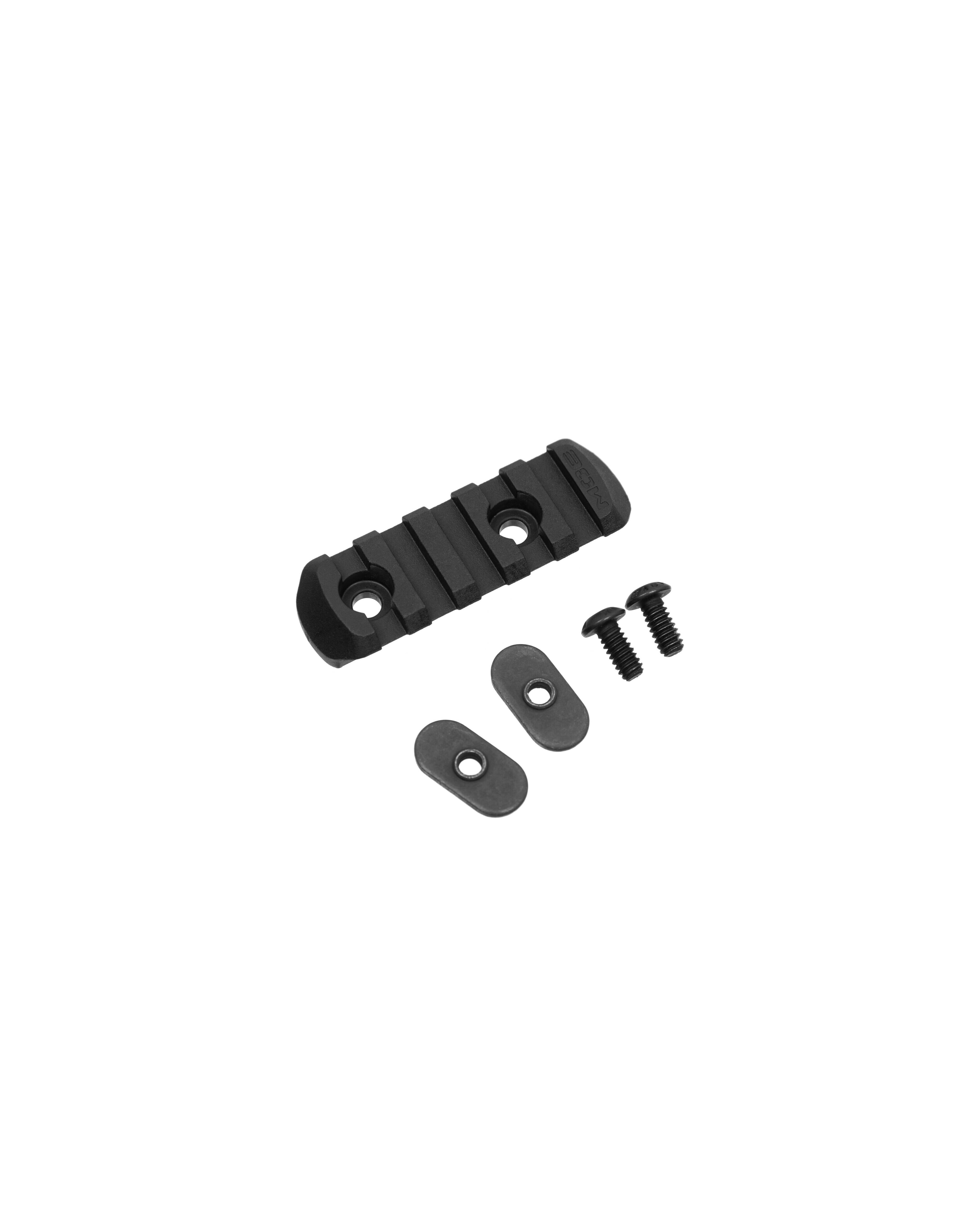 MOE® POLYMER RAIL, 5 SLOTS – направляющая стандарта 1913 Picatinny. Изготовлена из прочного полимера, способна выдерживать серьезные ударные нагрузки. Предназначена для установки различных аксессуаров (рукояти переноса огня, крепления для фонарей и лазерных целеуказателей и т.д.).