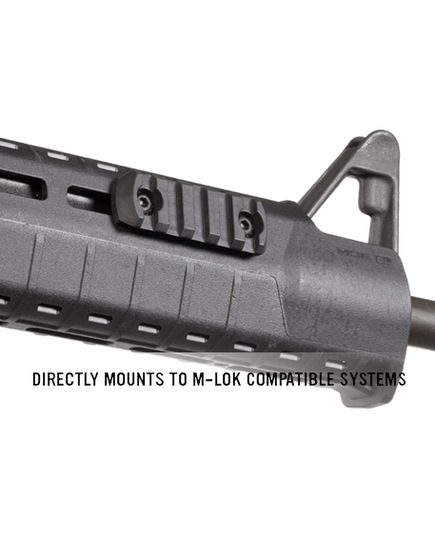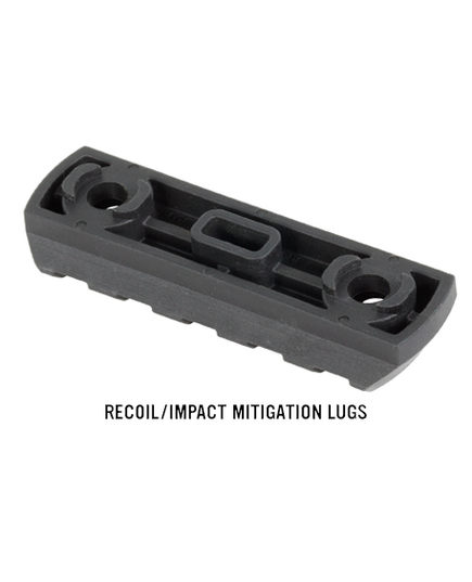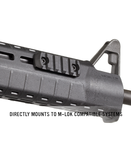 M-LOK™ POLYMER RAIL, 5 SLOTS – направляющая стандарта 1913 Picatinny. Изготовлена из прочного полимера, способна выдерживать серьезные ударные нагрузки. Предназначена для установки различных аксессуаров (рукояти переноса огня, крепления для фонарей и лазерных целеуказателей и т.д.). Подходит для использования с цевьями системы M-LOK.