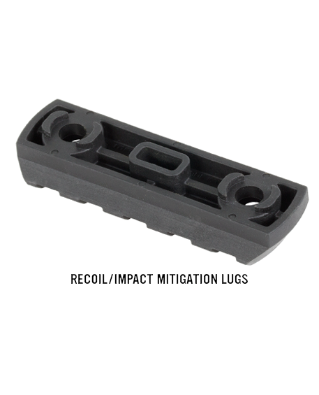 Обтекаемая форма и отсутствие острых углов препятствуют зацепам планки за снаряжение или одежду. Планка комплектуется креплениями для установки на цевья системы M-LOK.