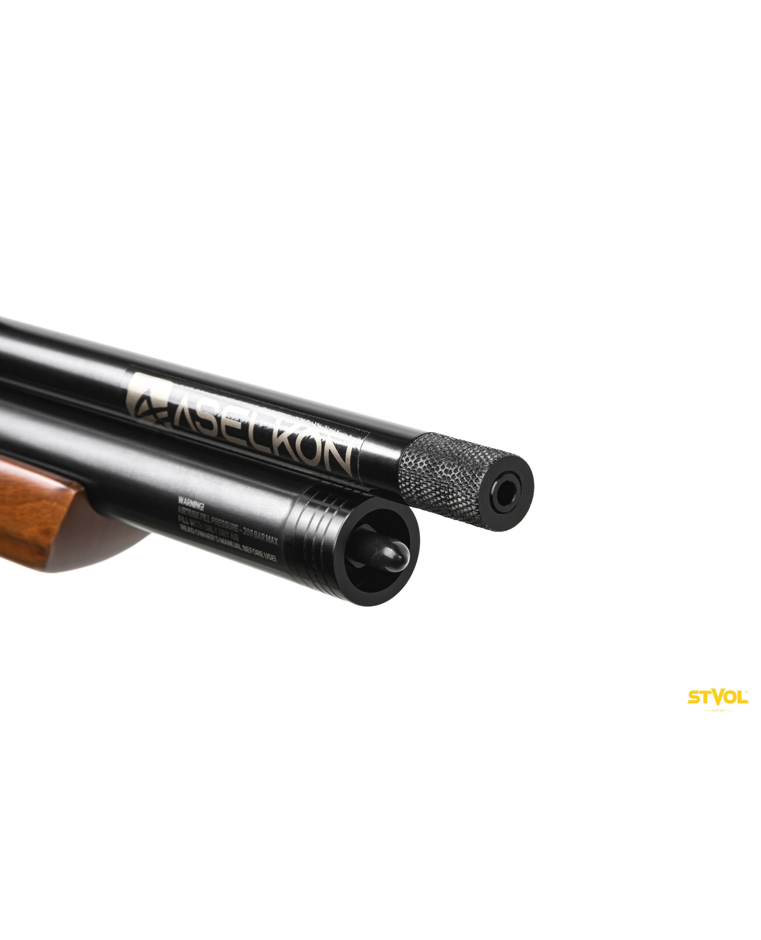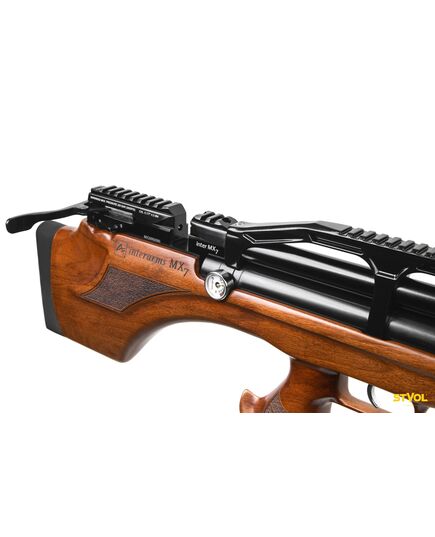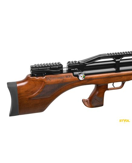 Пневматична PCP гвинтівка Aselkon MX7 Wood - ложе з регульованим підщічником, виконано з дерева (горіх), має м'який потиличник, не тільки пом'якшує і без того незначну віддачу, але і забезпечує більш зручну вкладку, завдяки чому ви зможете вести більш кучну і прицільну стрільбу.