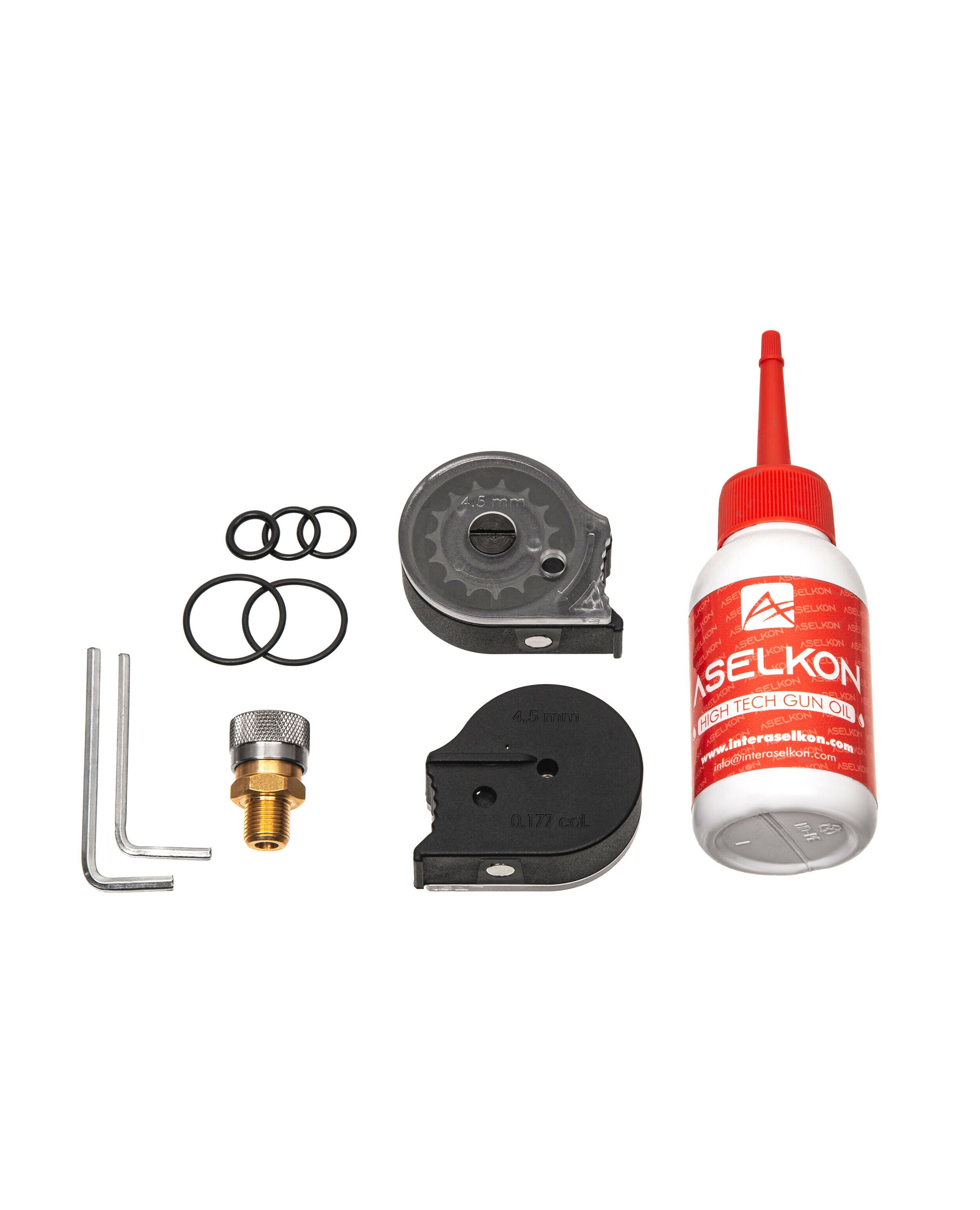 Поставляється в пластиковому кейсі, досить міцному і зручному для транспортування. У комплект поставки входять два магазини на 14 кульок, барабанного типу, але також є можливість стрільби одиночними пострілами, шляхом прямого заряджання.