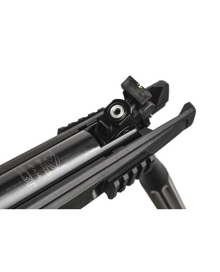 Пневматика с глушителем Whisper от компании Gamo, эта система подавления шума выстрела, представляющая собой ствол с интегрированным глушителем и дульным тормозом, уменьшающим отдачу при выстреле. Оснащена газовой пружиной «IGT System» (Inert Gas Technology). Ложа винтовки изготовлена из ударопрочного полимерного материала последнего поколения. Она также оснащена мягким затыльником системы SWA (SHOCK WAVE ABSORBER) – эксклюзивный амортизатор отдачи GAMO, который снижает ощущение отдачи на 74%. Это достигается благодаря трёхкомпонентной конструкции затыльника. Винтовка также оборудована ударно-спусковым механизмом CAT (Custom Action Trigger) с двухфазным регулируемым спуском. Благодаря использованию новейших технологий компании Gamo удалось достичь небывалой плавности хода спускового крючка, это позволит Вам стрелять еще более точно и добиваться отличных результатов. Легкие и компактные складные сошки позволяют в любом месте быстро подготовить удобную и устойчивую позицию для стрельбы. Сошки регулируется по высоте и могут фиксироваться в разных положениях. Винтовка также предусматривает регулируемую по высоте щеку приклада, выполненную из текстурированного полимера. Он позволяет настроить винтовку под физические параметры стрелка, для произведения более удобного и максимально точного прицельного выстрела. Фирменная технология для установки оптики Triple R (Recoil Reducing Rail) – планка для установки оптического прицела уменьшающая импульс отдачи - это революционная технология от компании Gamo. Многие любители мощной пневматики часто сталкиваются с проблемой при покупке оптики. Зачастую цена оптики, способной выдержать отдачу винтовки со скоростью больше 305 м/с, сопоставима с ценой самой винтовкой, а иногда и превосходит её. Использовав две алюминиевые планки, разделенные полимерными распорками, компании Gamo удалось создать планку, которая снижает импульс отдачи на 100%. Пневматическая винтовка GAMO HPA Mi поставляется с оптическим прицелом GAMO 3-9x40WR. Открытые прицельные приспособления представлены кольцевой мушкой и прицельной планкой.