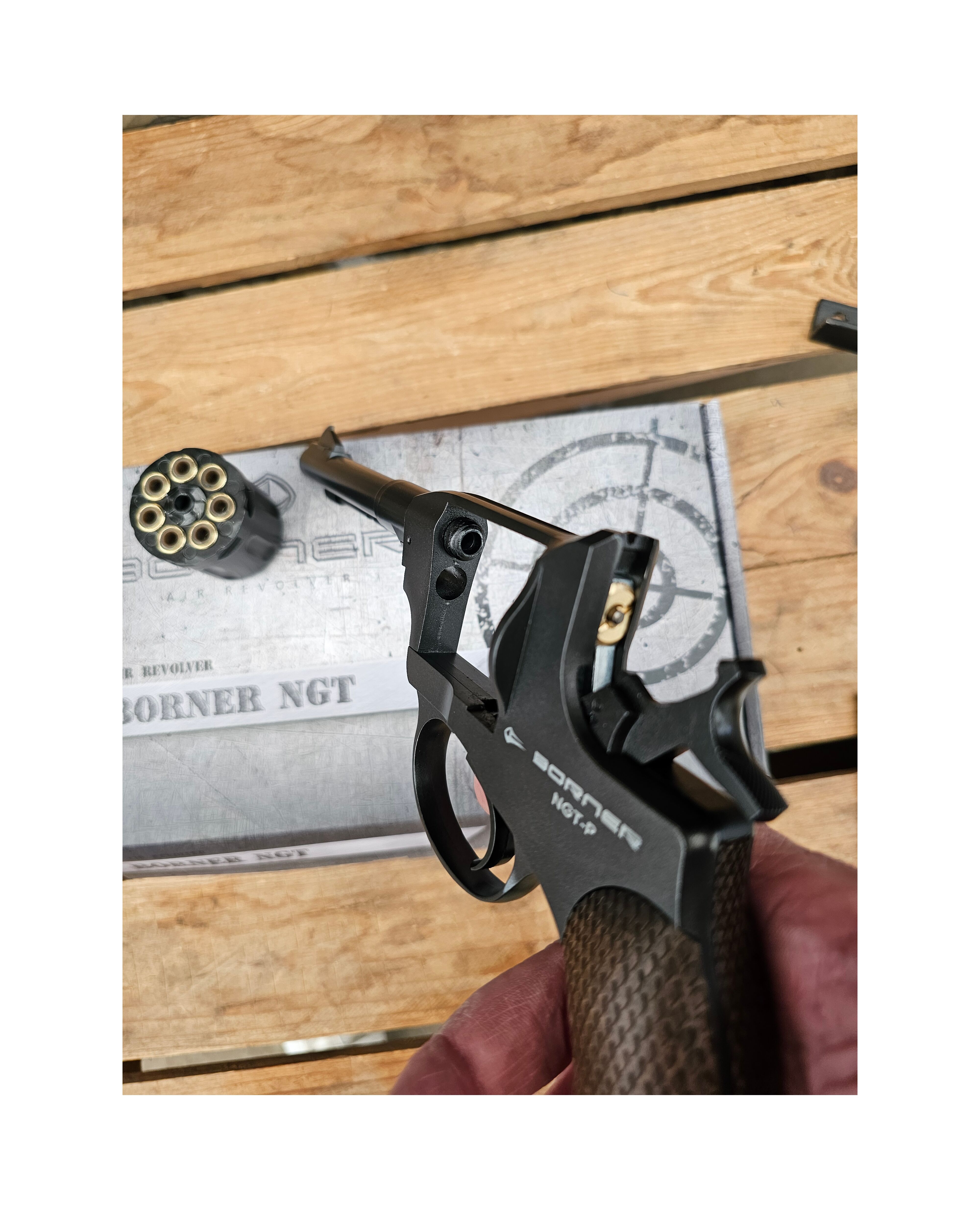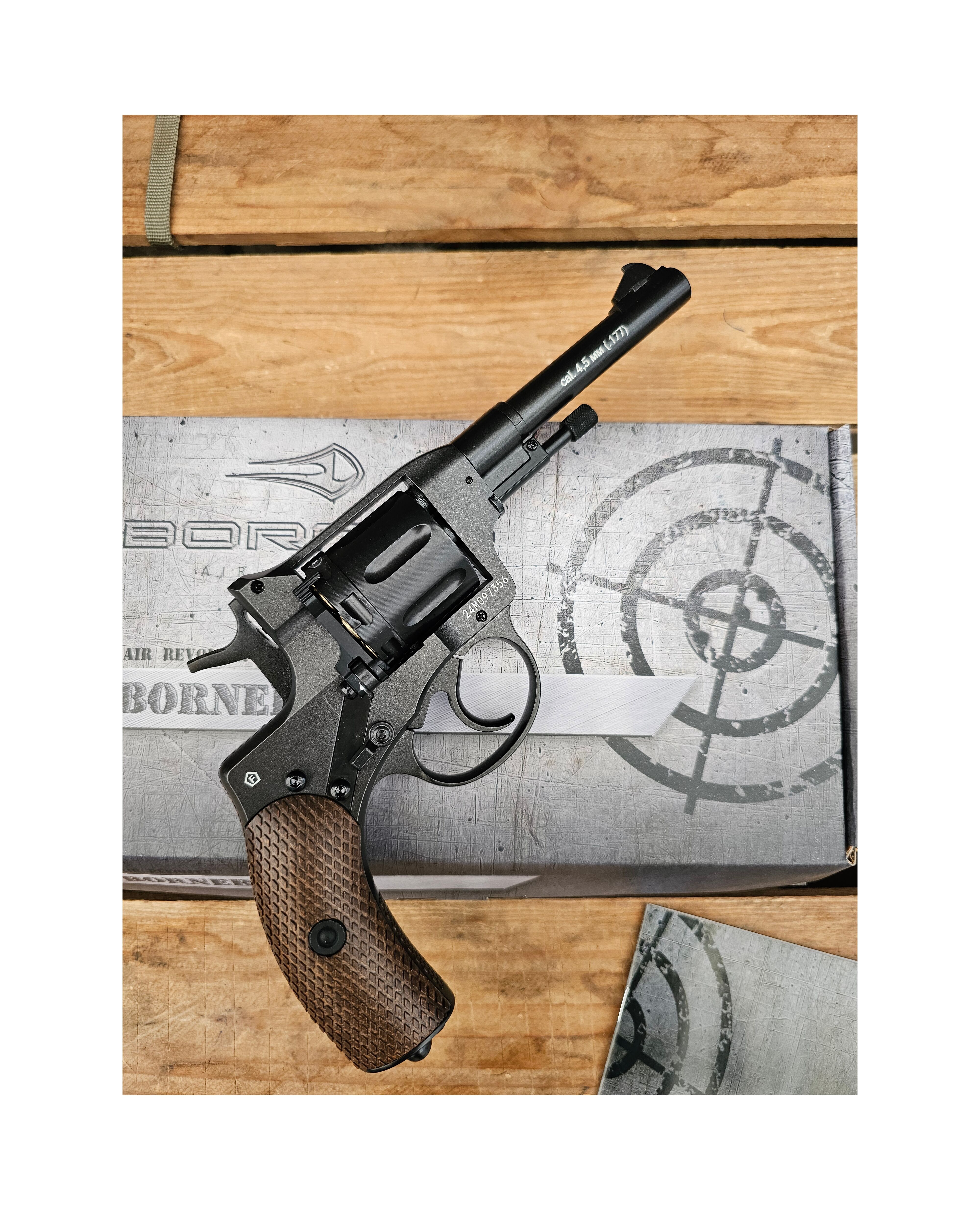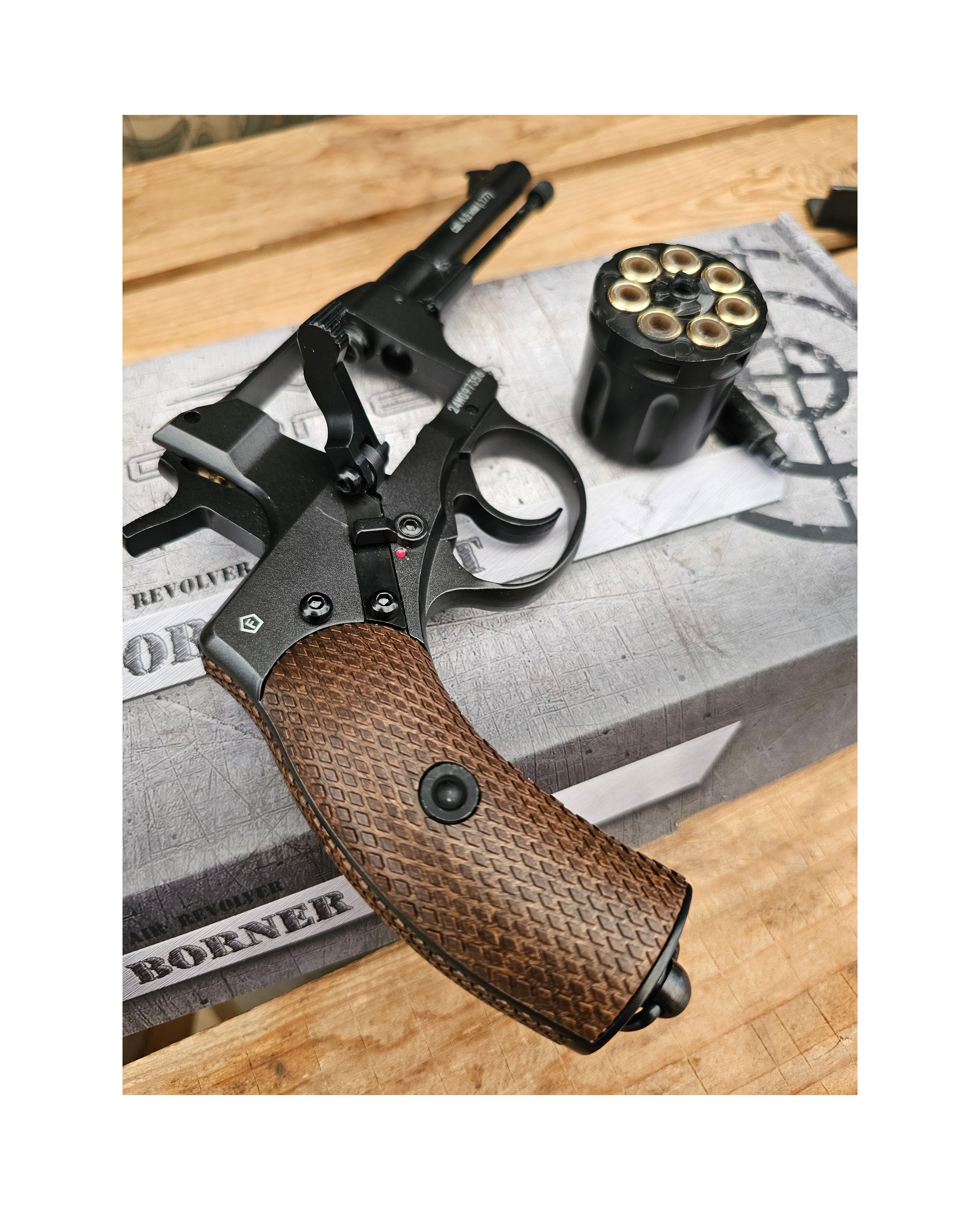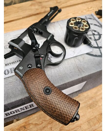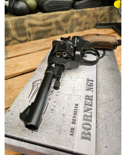 Модель Borner NGT Black — это пневматическая копия оригинального Нагана, выполненная с исключительной детализацией и вниманием к исторической достоверности. Она ориентирована как на коллекционеров, так и на любителей стрельбы по мишеням.