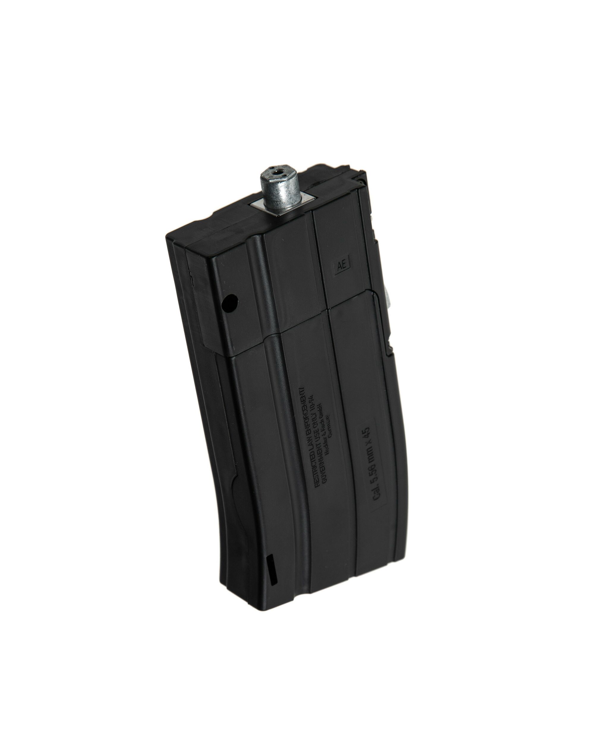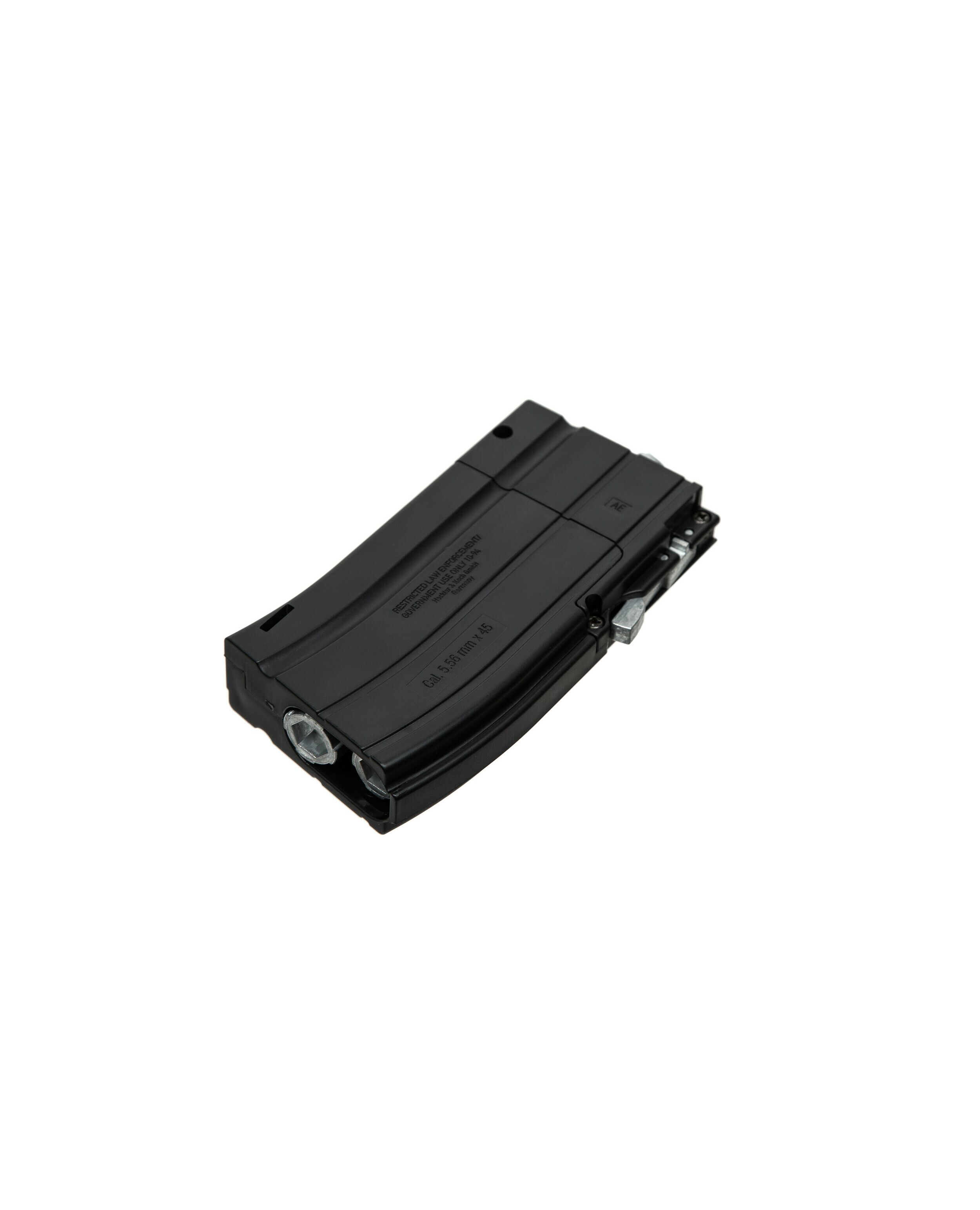 Работает от двух 12 граммовых баллонов которые помещаются в съемный магазин. Предохранительная система магазина предотвращает случайное сбрасывание, требуя вынимания магазина вручную.