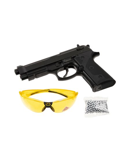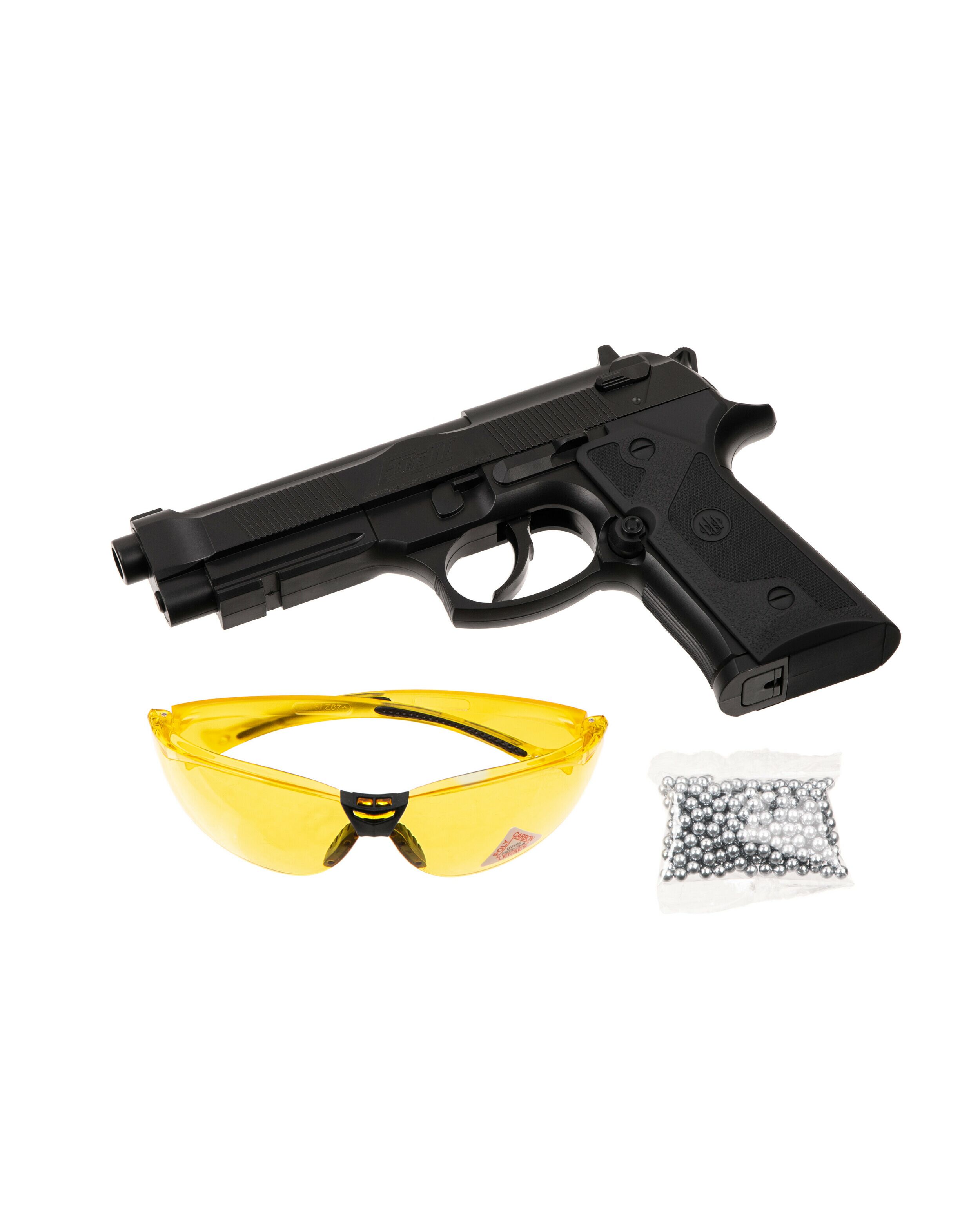 Газобаллонный пистолет с пакетом стальных шариков и защитными очками в комплекте. Приемлемый состав комплекта, стильный дизайн и простота использования делает данную модель хорошим выбором для новичков, только начинающих свое знакомство с миром пневматики. Рекомендован для развлекательной стрельбы.