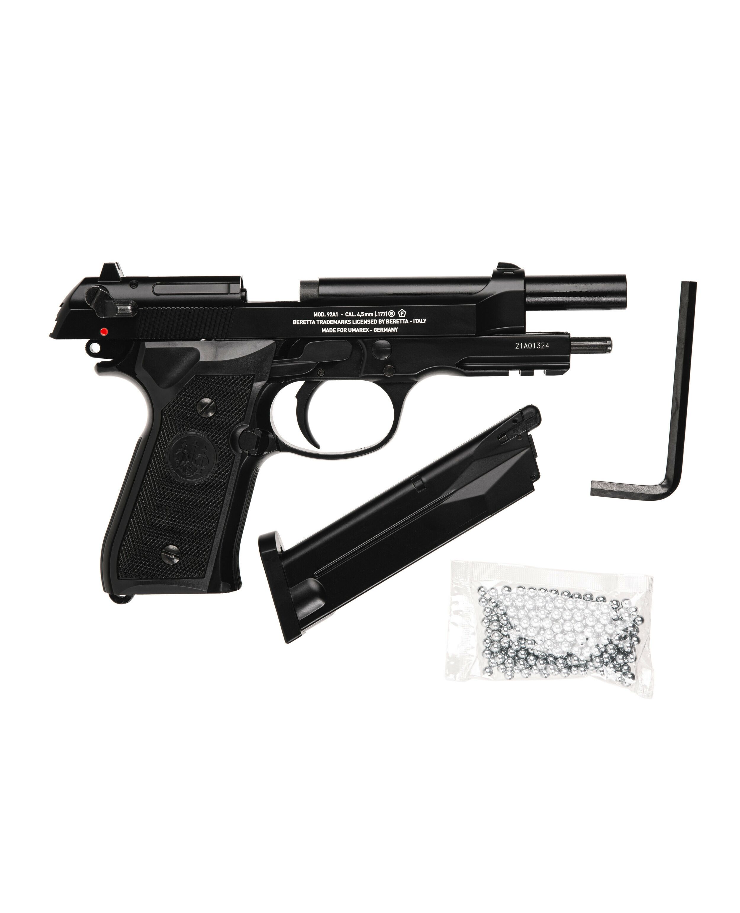 Цельнометаллическая версия знаменитого итальянского (и американского) служебного пистолета на 18 шариков кал.4.5мм BB с реалистичным эффектом отдачи (Blowback). Он весит целый килограмм, как и оригинал.