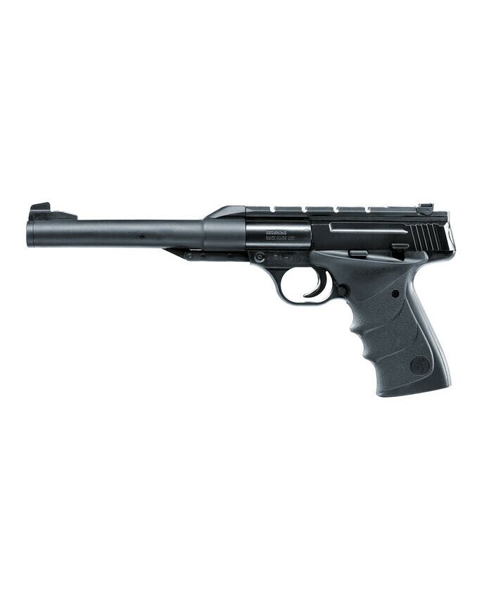 Browning Buck Mark URX является подлинной копией оригинального пистолета Browning 22 калибра. Специально разработанная рукоятка обеспечивает отличную управляемость и может использоваться как стрелками-правшами, так и стрелками-левшами. Благодаря пружинно-поршневому типу силовой установки не требует сменных источников сжатого воздуха. На планку Вивера можно устанавливать различные прицелы. Пистолет имеет небольшое усилие взвода.