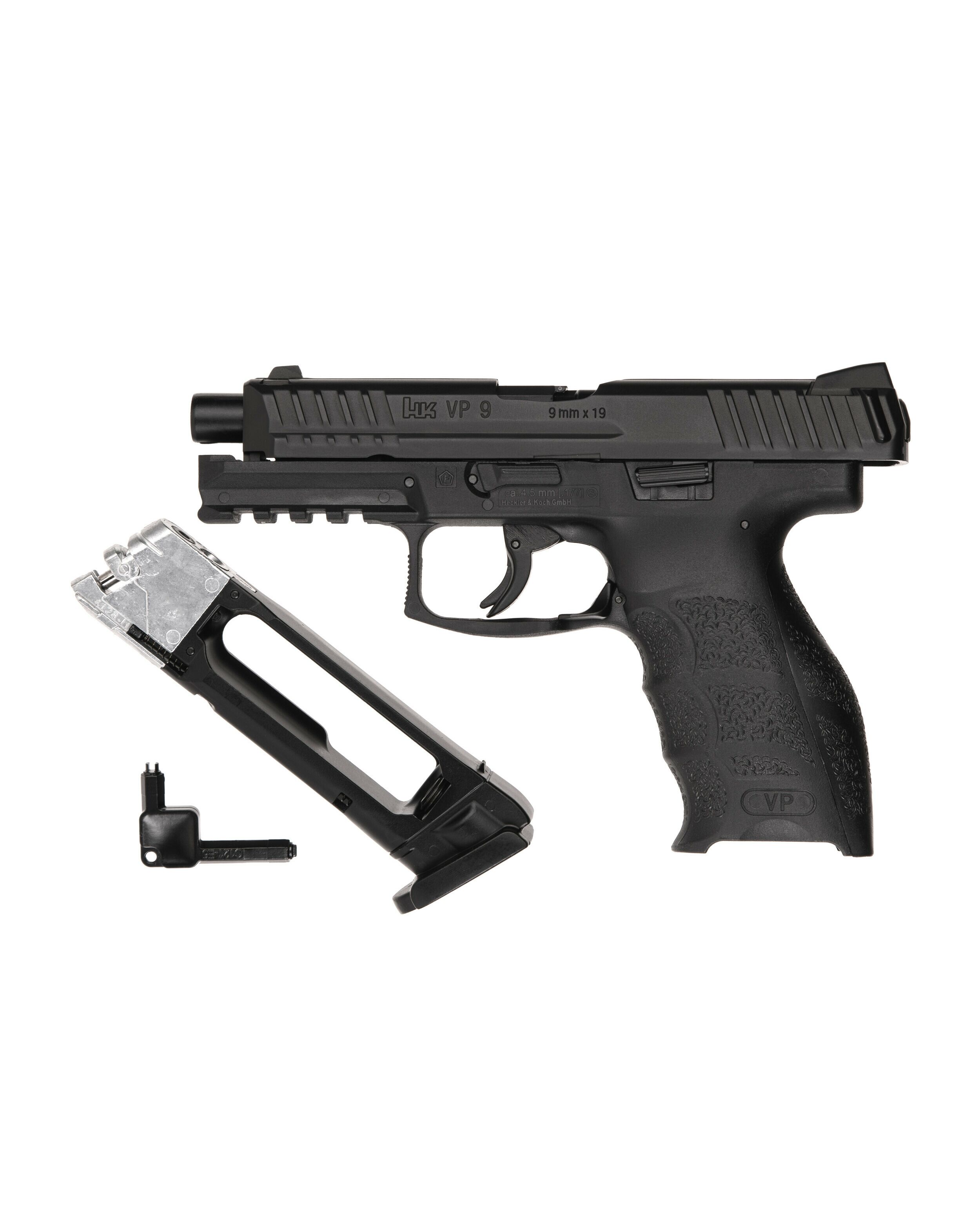 Этот пистолет, известный как SFP9 в Германии и как VP9 на международном рынке, является фаворитом среди энтузиастов. Создав это ультрасовременное, визуально впечатляющее оружие, Heckler & Koch продолжила традицию, заложенную в модели VP70. Версия CO₂ оснащена затвором из тяжелого металла и универсальным магазином на 18 шариков BB и картриджем CO₂ 12 г. Текстурированная рукоять, как и у оригинала, дает хороший контроль отдачи, которая в свою очередь обеспечивается функцией Blowback . Гарантированно доставит вам массу удовольствия.