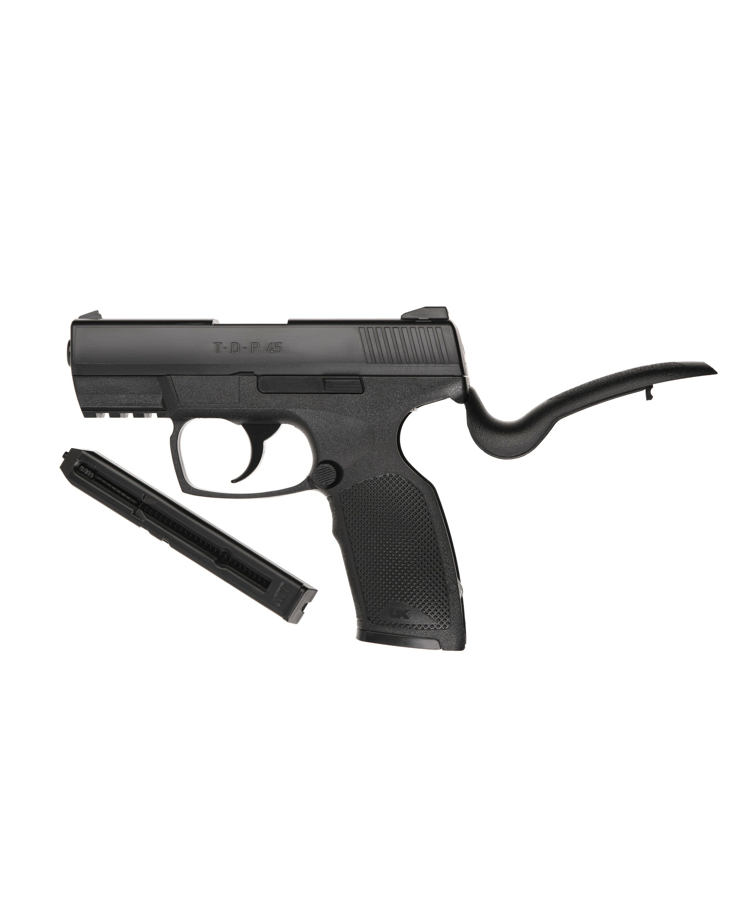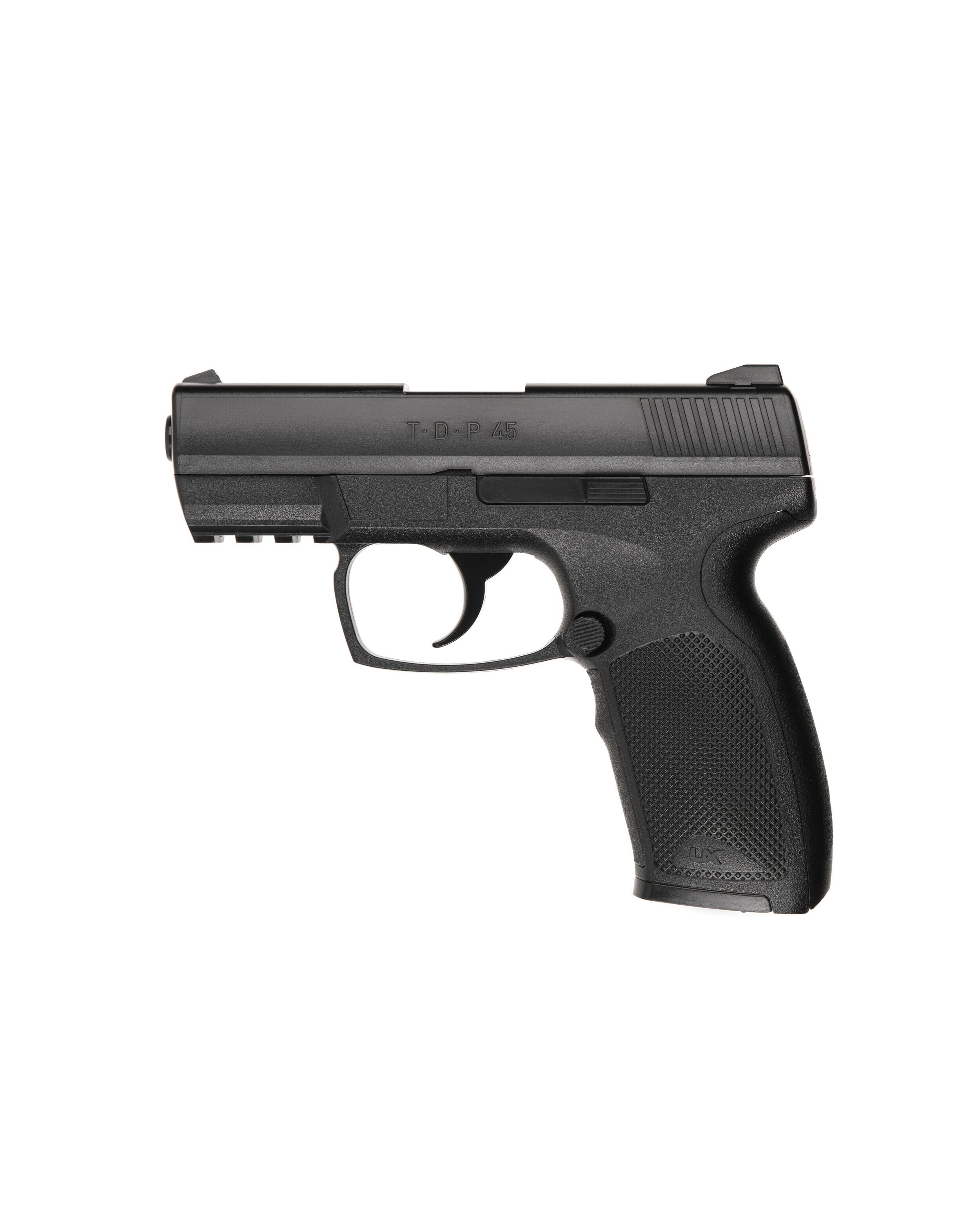 Tactical Defense Pistol 45 - модель начального уровня для поклонников CO₂, которые оценят простоту использования и привлекательный дизайн. Капсулы 12 г CO₂ можно заменить всего за несколько шагов. Съемный магазин вмещает 19 стальных шариков BB и может быть заменен мгновенно. Легкодоступный предохранитель может управляться в положении для ведения стрельбы, а спусковой крючок двойного действия позволяет вести беглый огонь. Ствольная коробка T · D · P · 45 имеет планку Пикатинни для крепления аксессуаров. Этот элегантный пистолет CO₂, простой в использовании и оснащенный множеством функций, предлагает отличное соотношение цены и качества.