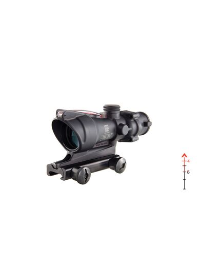 - прицельная сетка с красным шевроном предназначена для пристрелки на расстоянии 100 метров. Ширина шеврона у основания составляет 5,53 МОА, что составляет 48 сантиметров на дальности 300 метров. Это позволяет оценить дальность силуэтных целей. Имеет двойную подсветку (волоконная оптика обеспечивает дневное освещение, а тритий освещает сетку прицела ночью). Прицельная сетка откалибрована для винтовок калибра 5.56 (.223) на дальность до 800 метров.