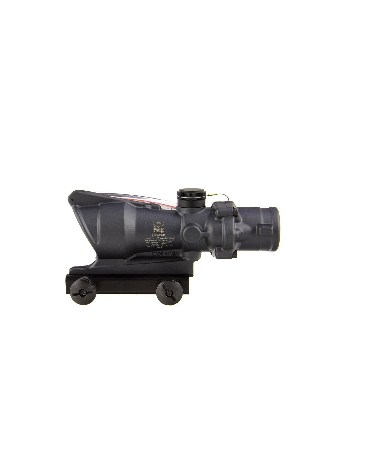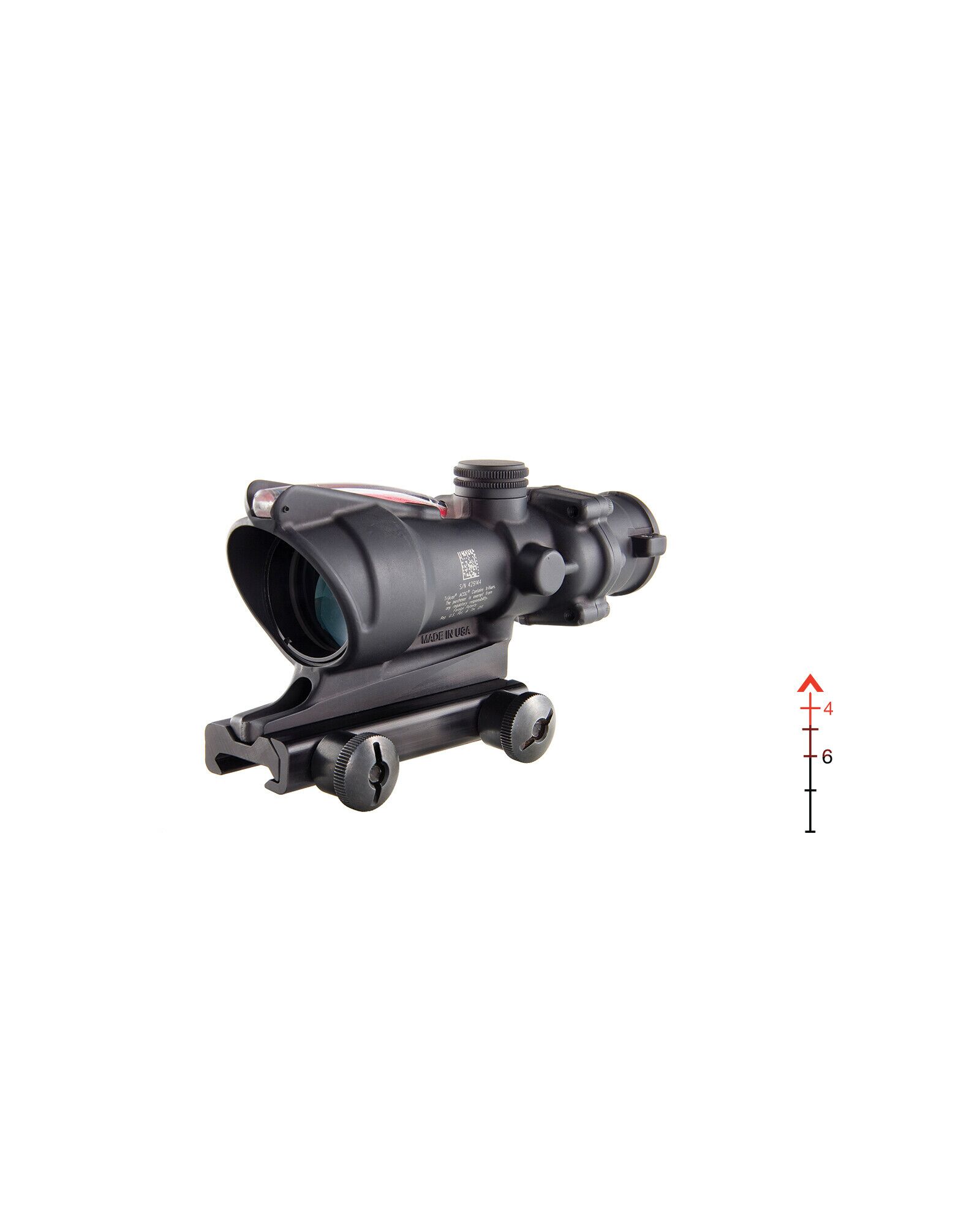 - ACOG 4х32 оснащен прицельной сеткой Red Chevron с компенсацией падения шара и дальностью прицеливания.
